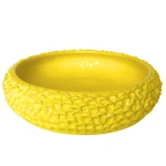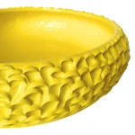 This presentation plate in cadmium yellow is a striking ceramic centerpiece designed to command attention. Versatile in its use, it serves as both a decorative object and a magnificent platter for serving spaghetti for up to eight people, adding elegance to any dining experience. Daria Dazzan creates her works at the intersection of design, ceramics, and sculpture, blending her background in haute couture fashion and textiles into every piece.