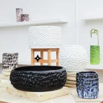 The Onda Series, inspired by the Italian word for “wave,” features textures reminiscent of gentle ripples, crafted with the artist’s thumb in a gestural, organic movement—like embroidery on clay.