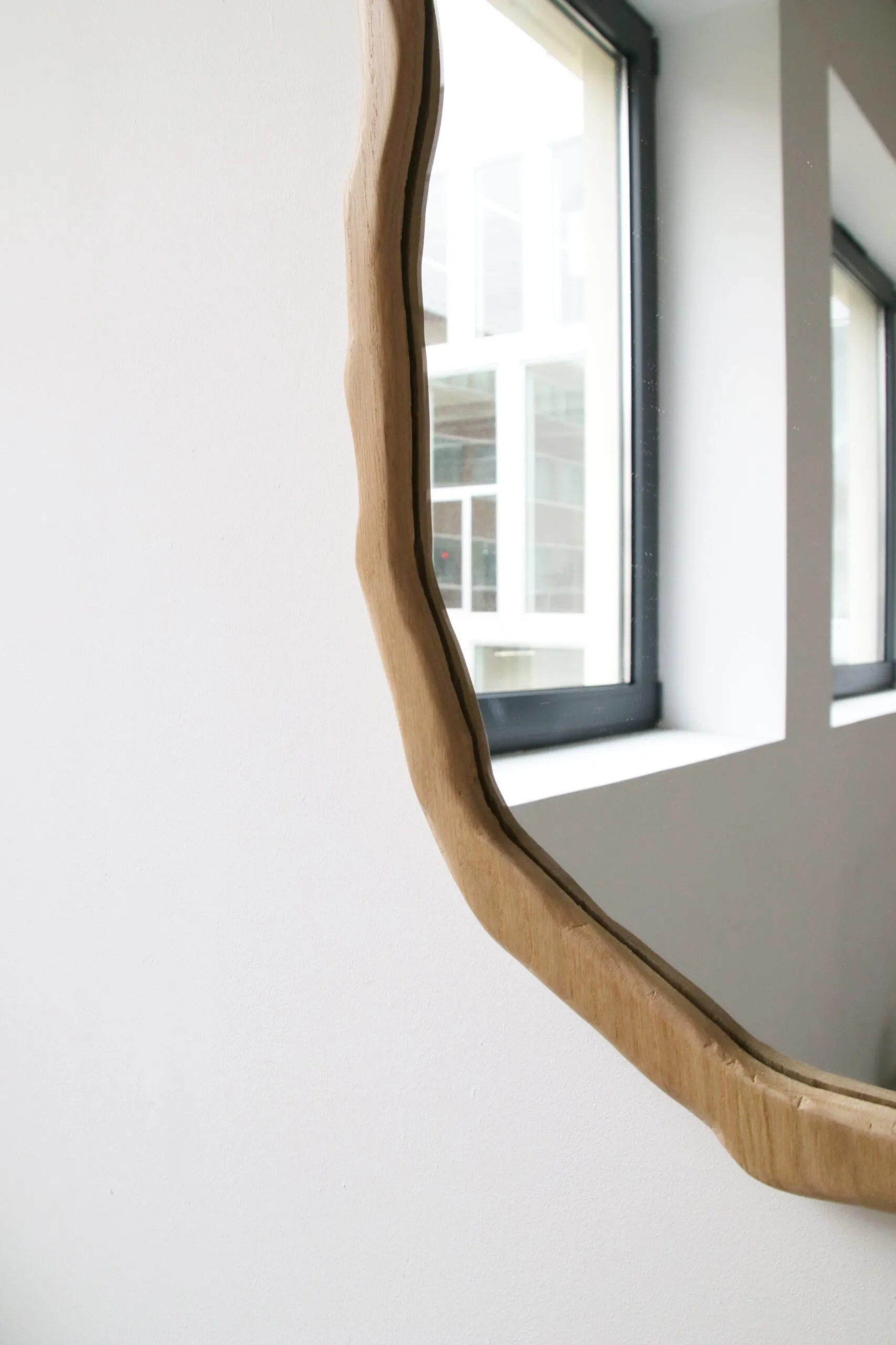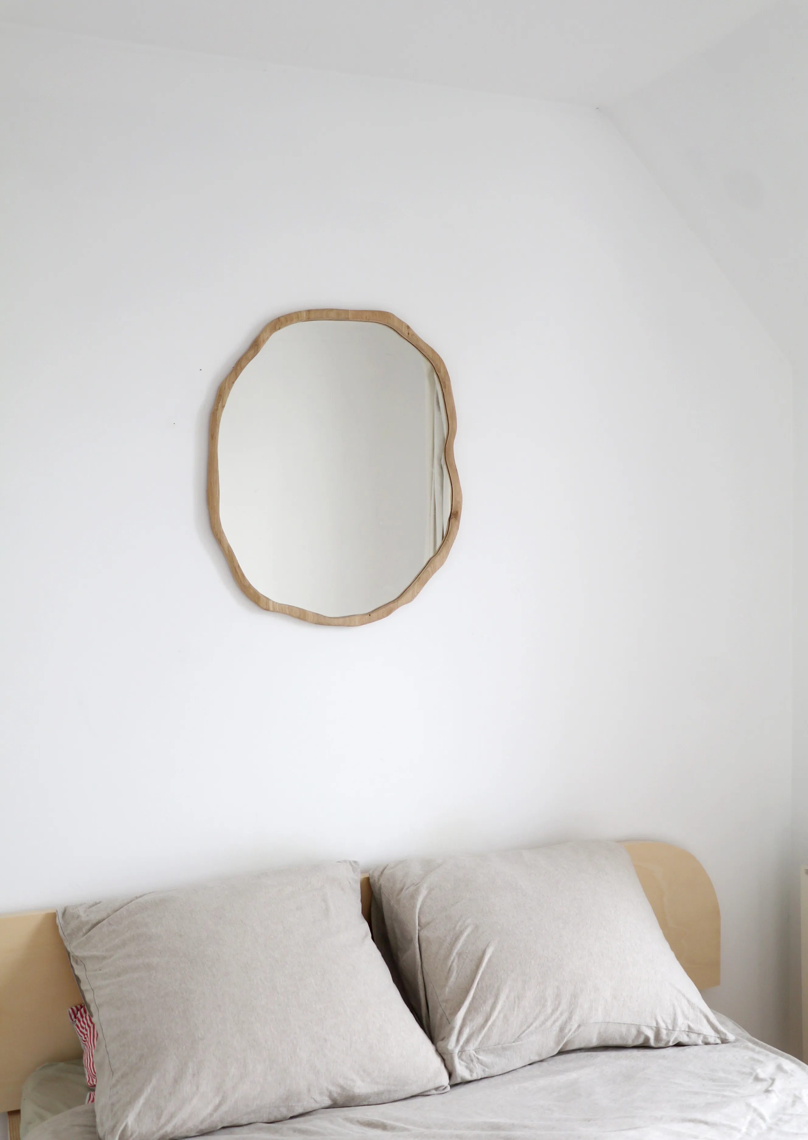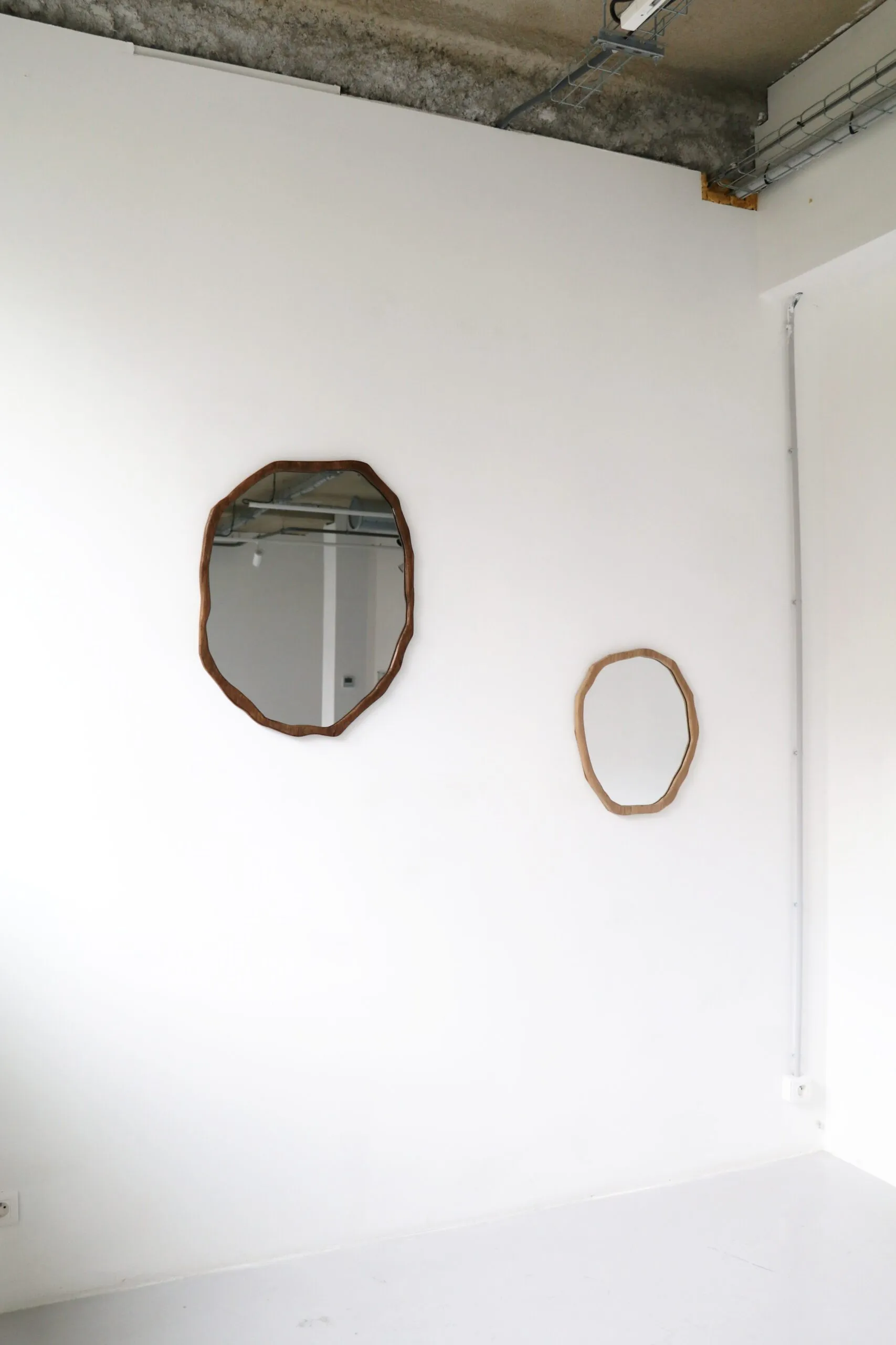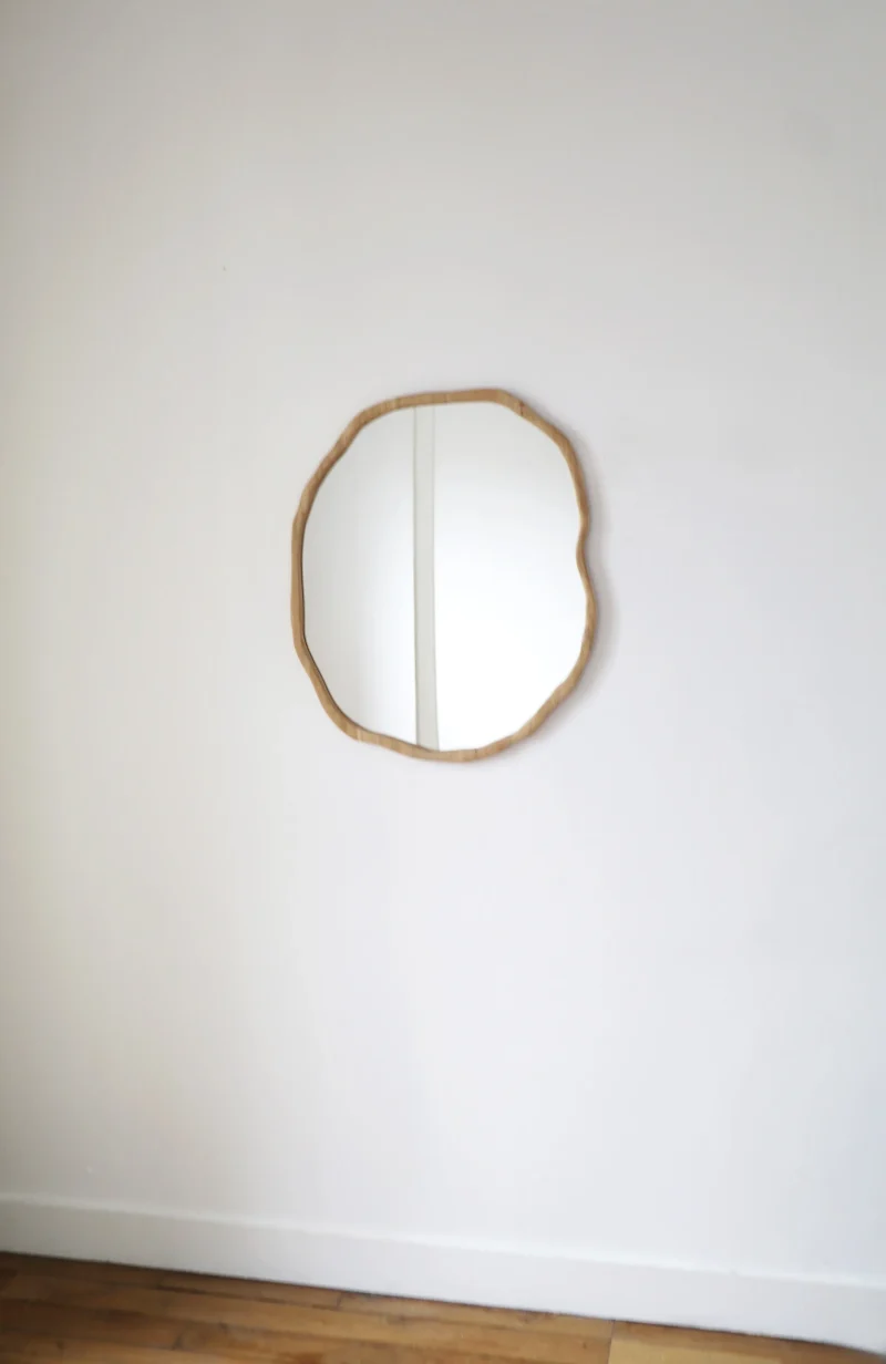 The “Ondulation Mirror” by Lahana Alice gradually takes shape as it is cut. The oak that follows the shape of the mirror is carved with a chisel and then sanded until its surface is as soft as silk. It is available in light or dark varnish and goes perfectly with other formats.