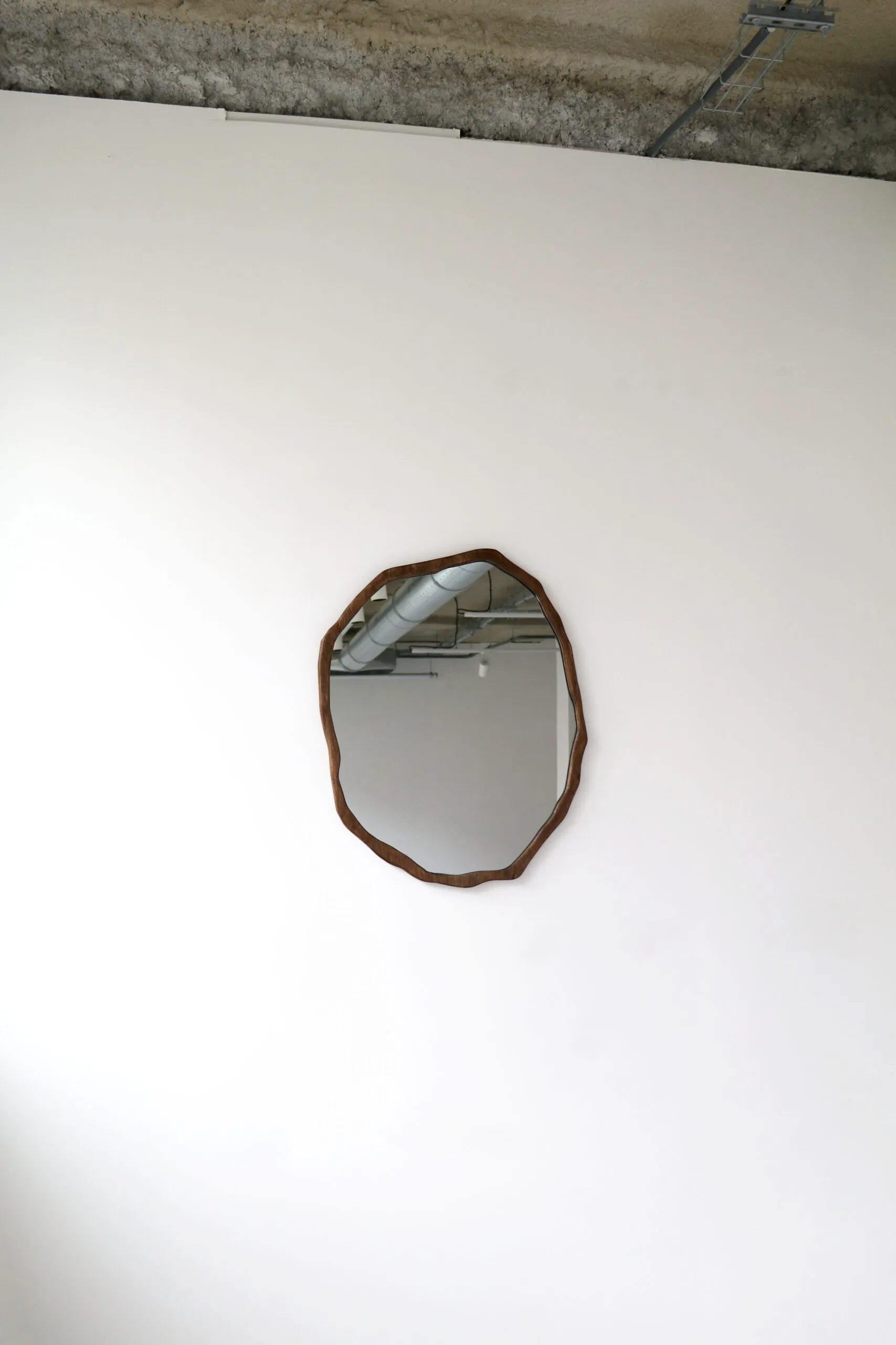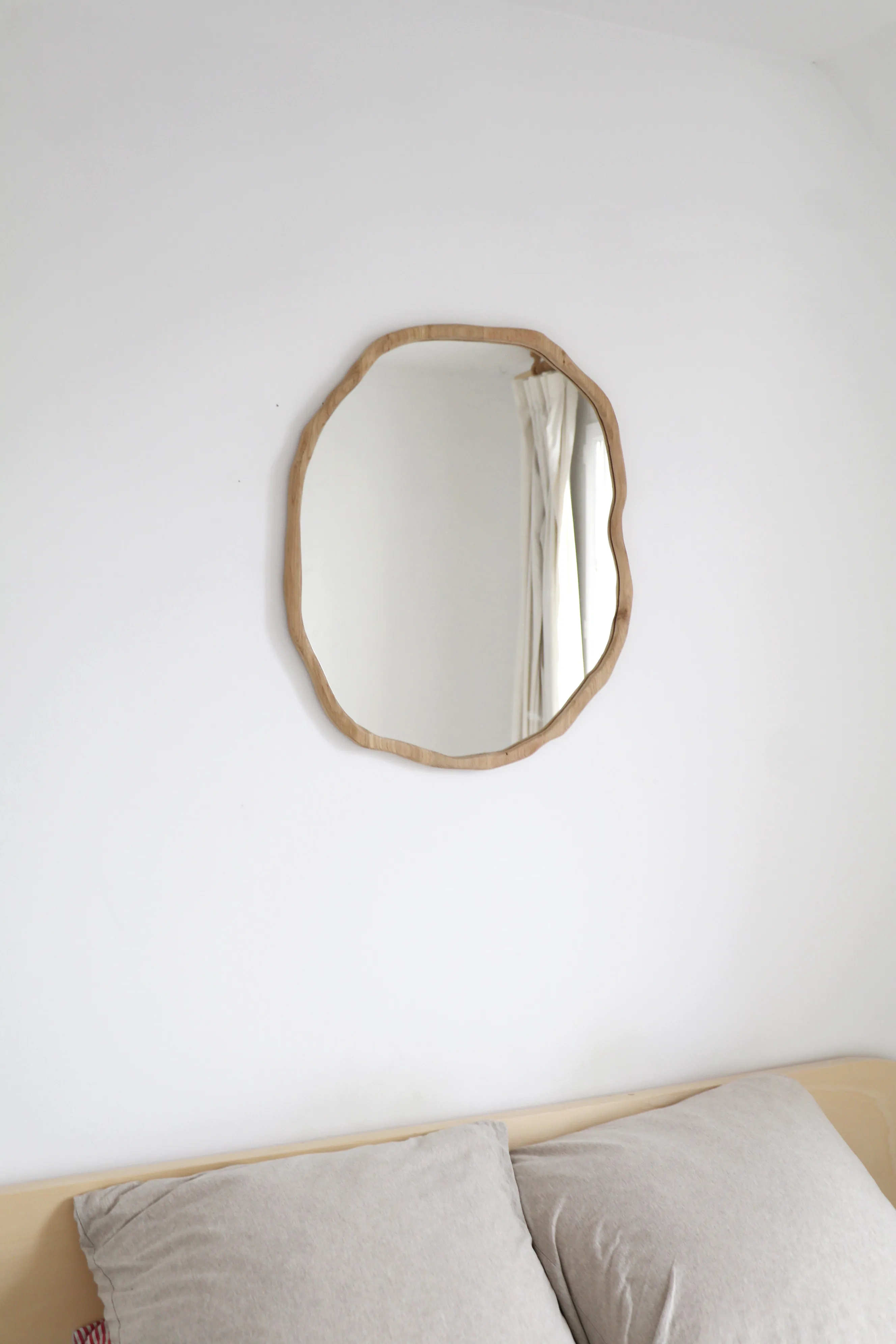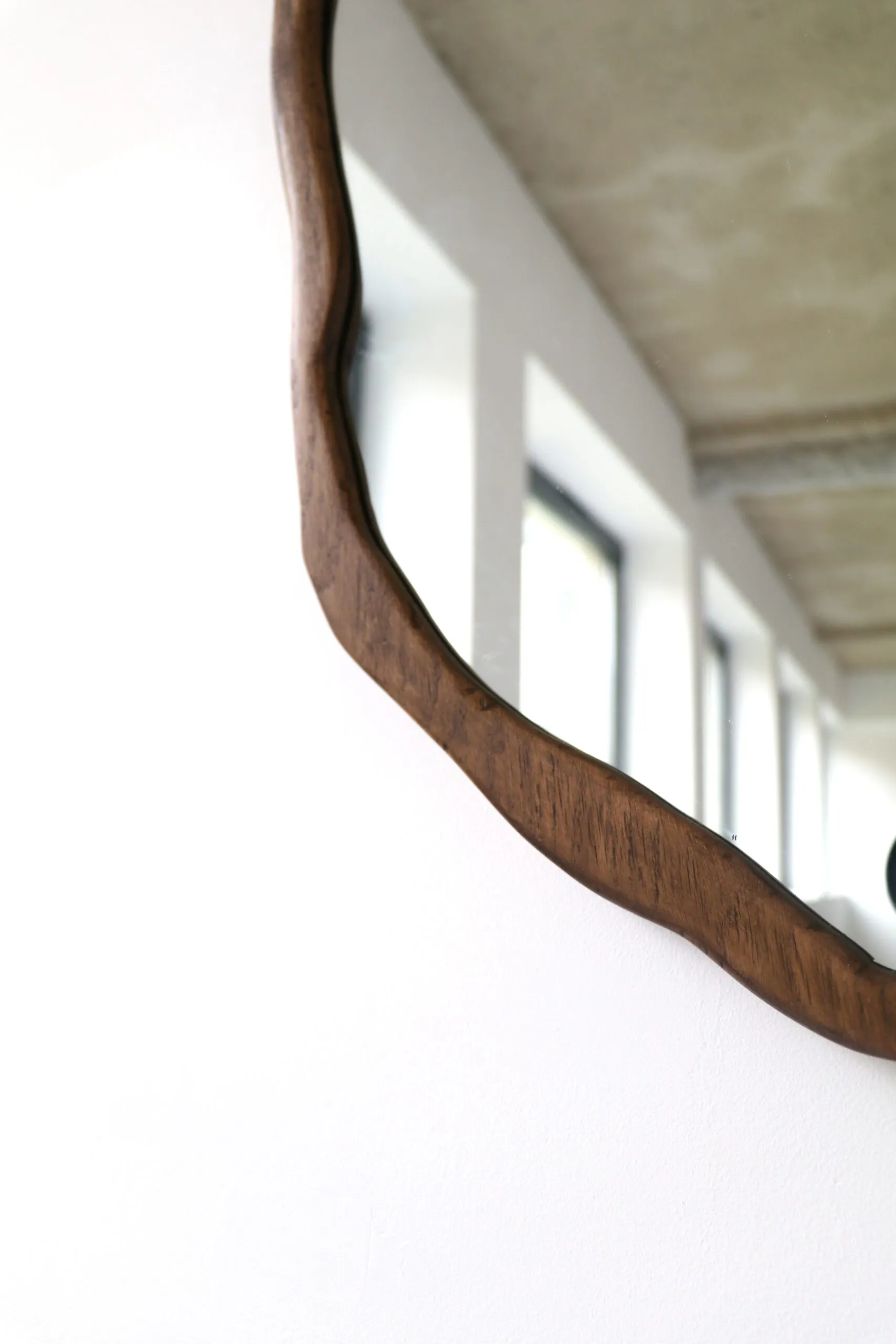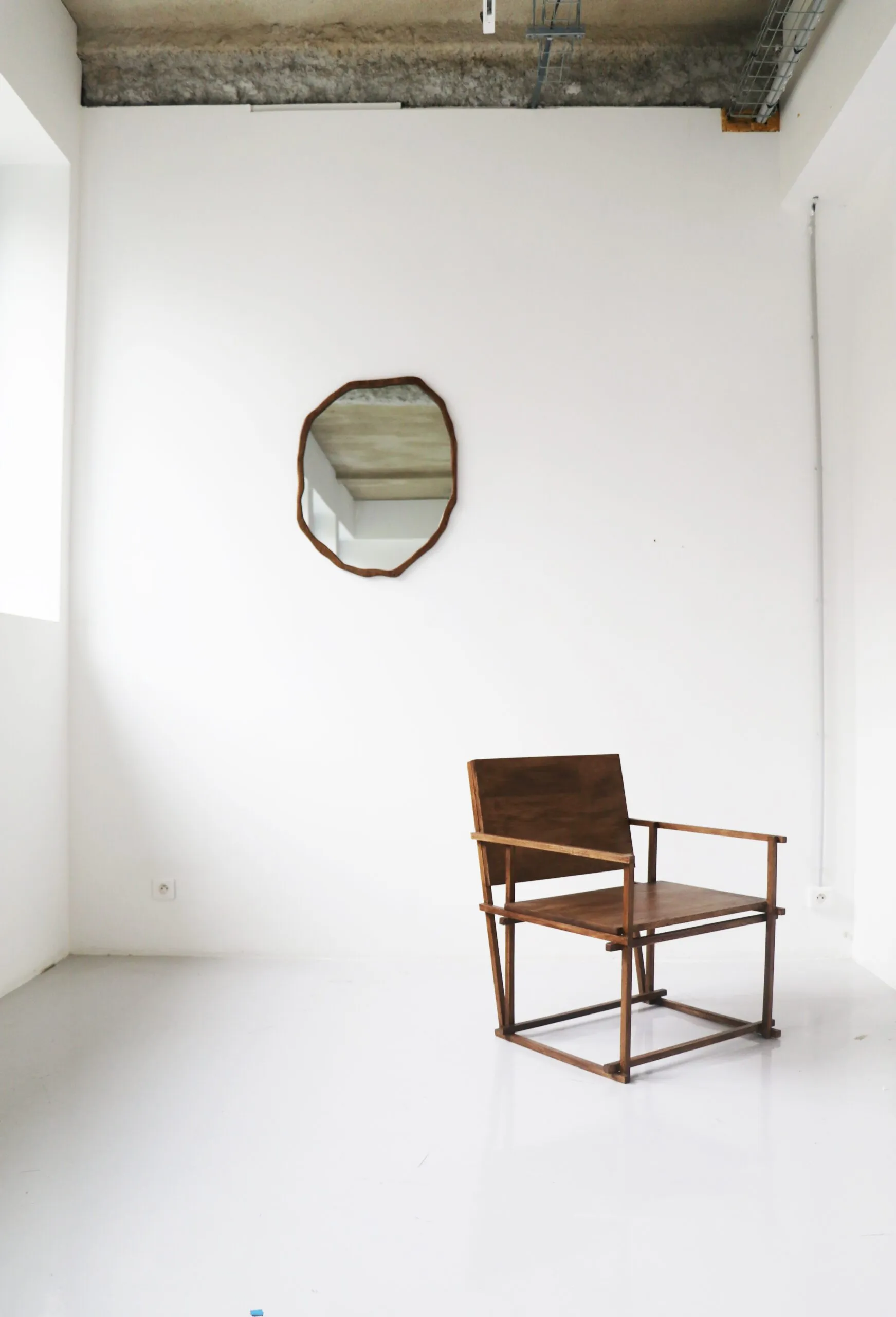 The “Ondulation Mirror” by Lahana Alice gradually takes shape as it is cut. The oak that follows the shape of the mirror is carved with a chisel and then sanded until its surface is as soft as silk. It is available in light or dark varnish and goes perfectly with other formats.