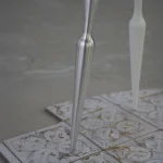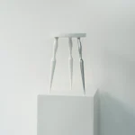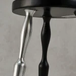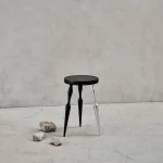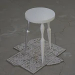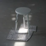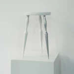 This asymmetric structure, with only one aluminum leg, explores the boundary between balance and imbalance through the juxtaposition of traditional forms and modern materials. The stool creates visual tension without compromising its physical stability, reflecting the artist’s intention to challenge conventional norms.
