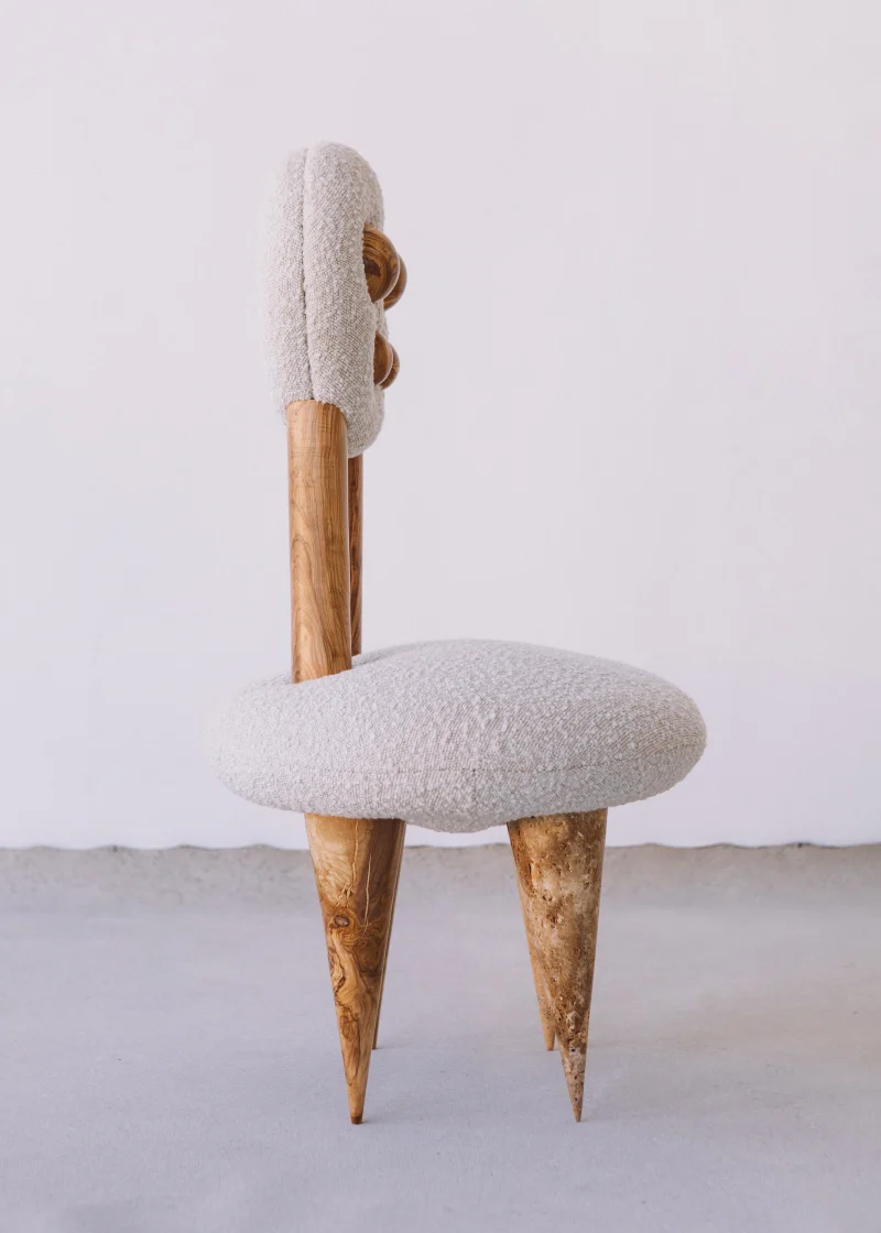 The Ooo Chair by Worn Studio, a Spanish furniture and product studio founded by Designer Natalia Ortega, embodies contemporary design and craftsmanship. Spanish artisans meticulously craft the chair from turned wood and turned marble legs, reflecting the studio’s commitment to quality and artistry. Infused with Bauhaus and eclectic design elements, this chair seamlessly combines modernist philosophy with avant-garde aesthetics. A manifestation of Natalia Ortega’s dedication to intentional design, the Ooo Chair is a unique blend of traditional craftsmanship and innovative design, making it a standout statement piece in any contemporary living space.