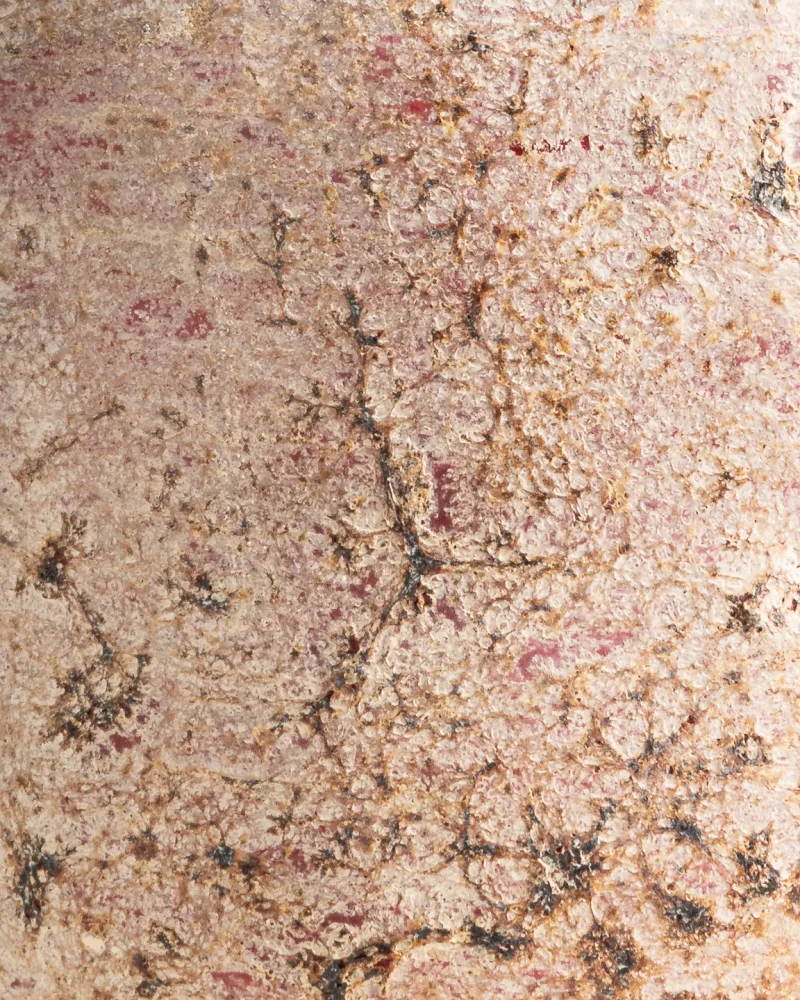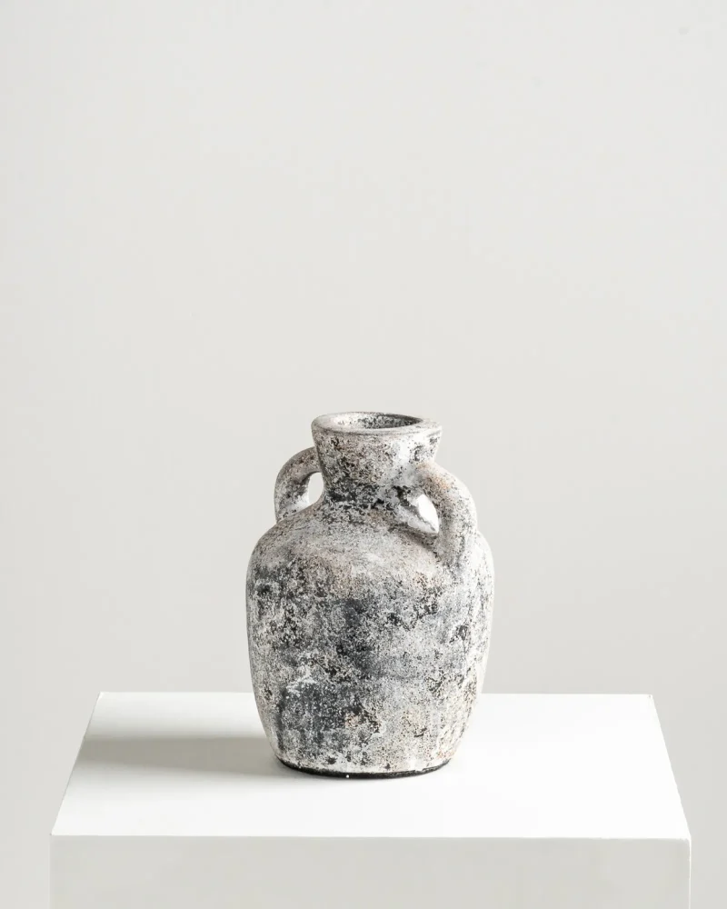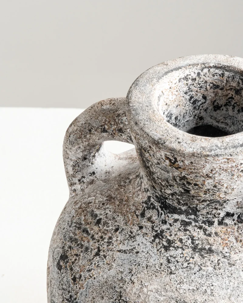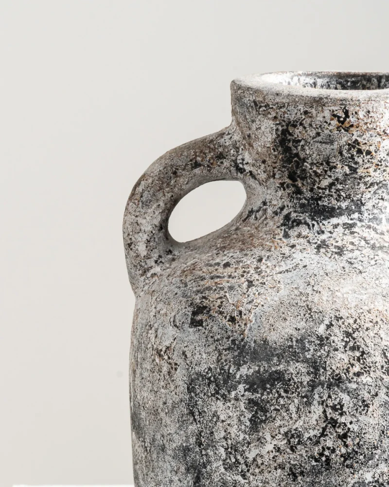 The Opal Vase by Rumma features timeless charm with an antiqued texture and rustic allure, highlighting rich terracotta craftsmanship. It’s earthy tones and intriguing details make it a classic addition to your space. Embracing brutalist style, this vase’s robust form and bold presence add raw elegance to your decor.