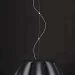 Black and white PVC. Wire sling with fabric cord (L 150cm), brushed steel ceiling rose.