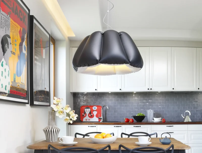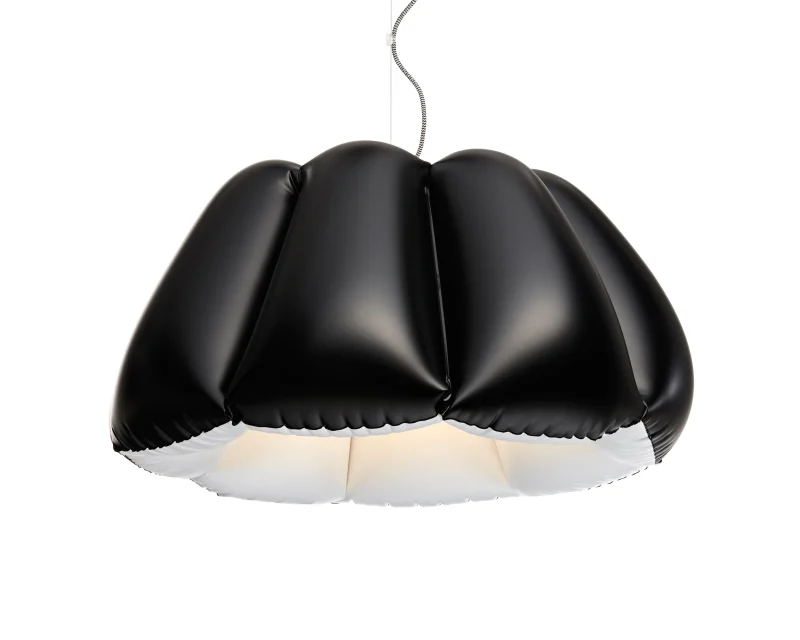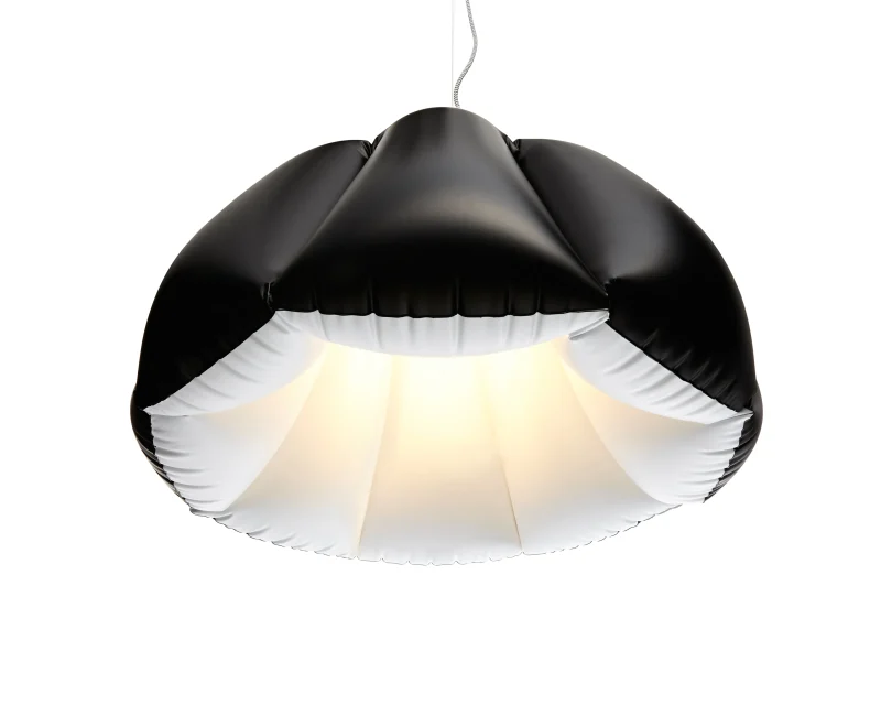 ORCA is another surprising piece from the Inflate collection by PUFF-BUFF. Double-colored lamp is inspired by one of the most beautiful mammals. A large, flexible lampshade is air-filled and it’s like an eight-part dome. It directs most of the light downwards creating a cozy mood. The brave form adds character to any space and suits both residential and public interiors. Wherever it hangs, it will not go unnoticed. Orca is made of high-quality PVC, finished in matt black and satin white. With black & white cloth-covered wire and canopy in brushed metal.