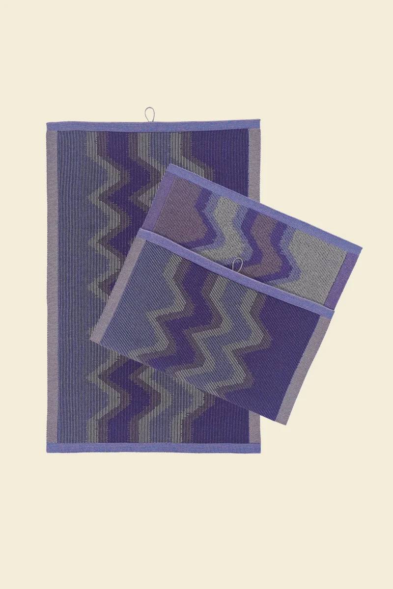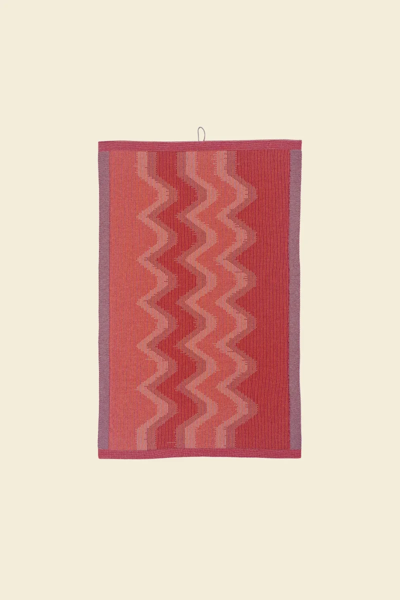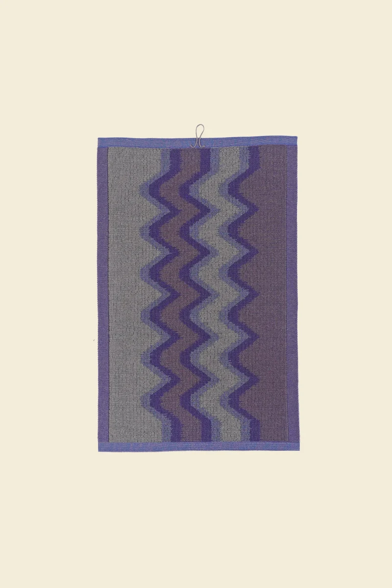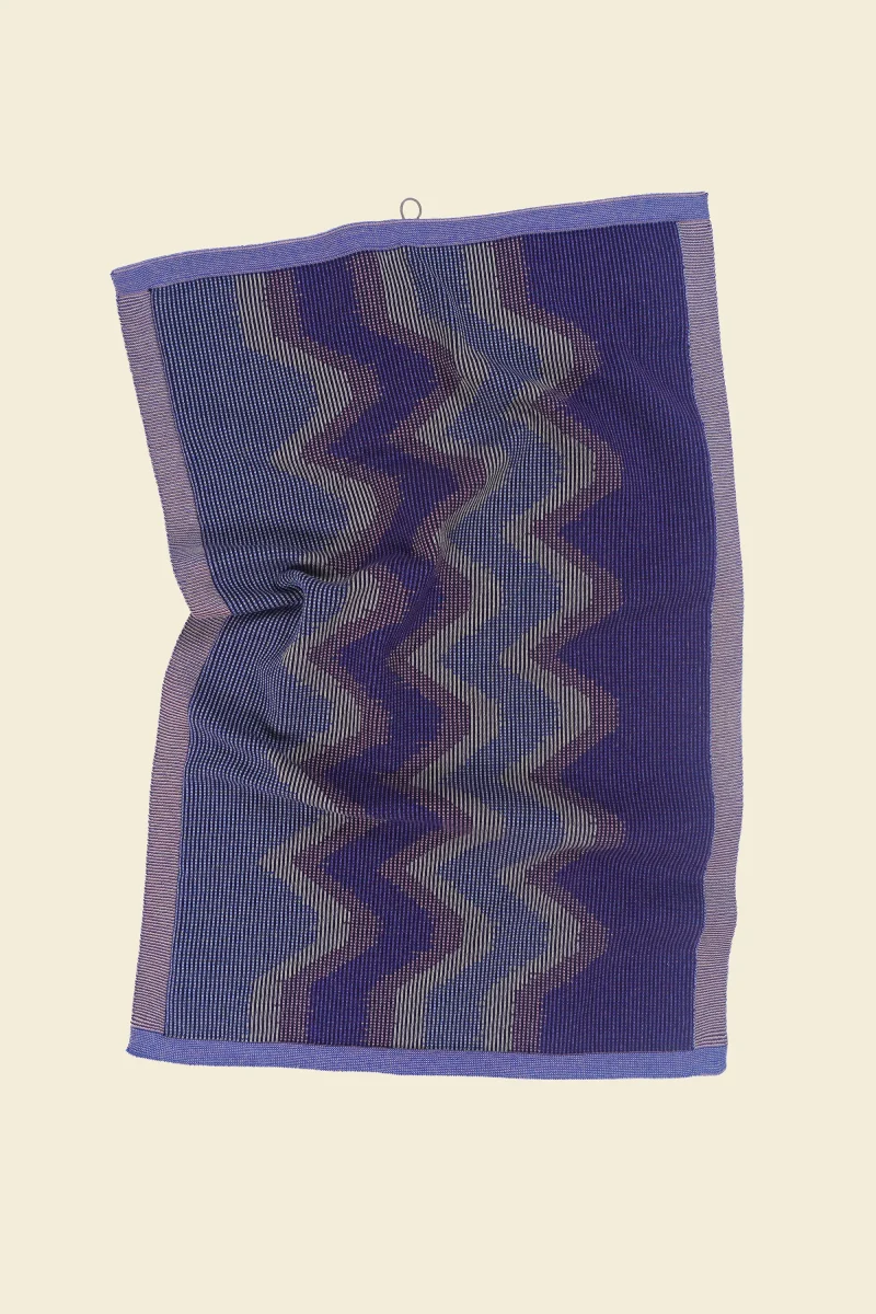 A sustainable knitted kitchen towel made from organic cotton. Inspired by woven ikat textiles, it embraces imprecise graphics for a unique, artistic look. The special weave-in technique adds stability to the towel, making It durable for countless uses in your kitchen.