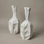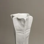 The Kawa Series is crafted using an unusual, painstakingly refined technique unique to Luft Tanaka. Each creation begins as a simple sketch and transforms into a leather mold. After cutting, sewing, and preparing the mold for casting, liquid porcelain is poured inside, slowly forming a thin layer along the leather surface. Once the porcelain sets, the mold is carefully cut at the seams and gently peeled away, allowing the piece to be fired in a kiln.