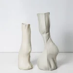 The Kawa Series is crafted using an unusual, painstakingly refined technique unique to Luft Tanaka. Each creation begins as a simple sketch and transforms into a leather mold. After cutting, sewing, and preparing the mold for casting, liquid porcelain is poured inside, slowly forming a thin layer along the leather surface. Once the porcelain sets, the mold is carefully cut at the seams and gently peeled away, allowing the piece to be fired in a kiln.