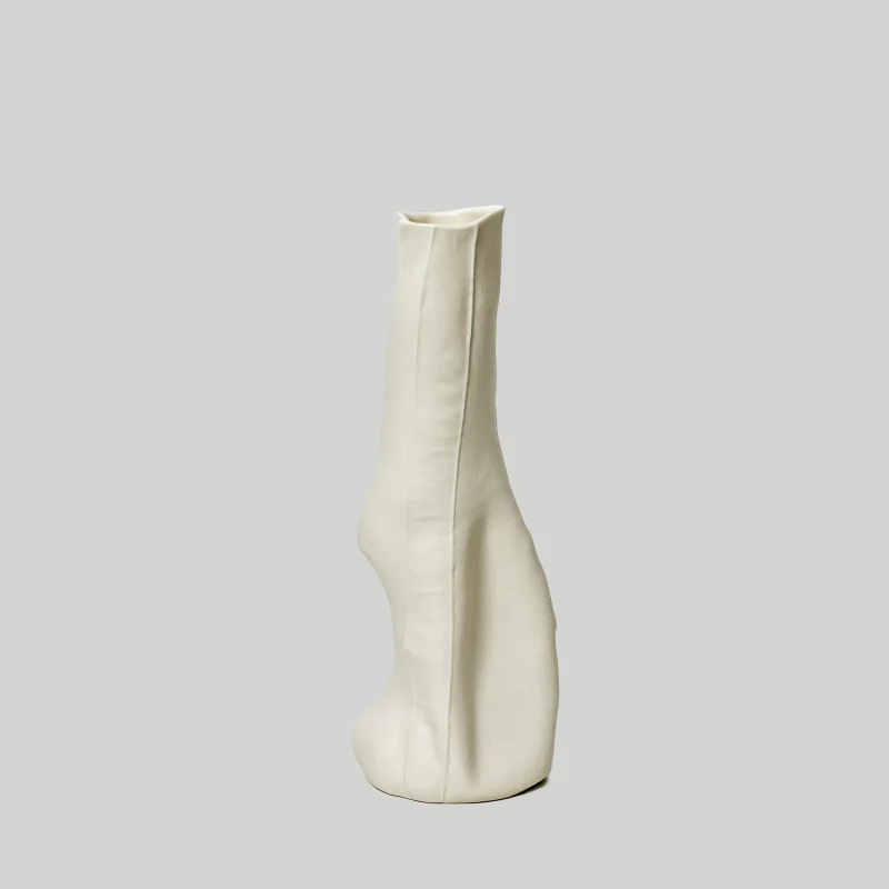 The Kawa Series is crafted using an unusual, painstakingly refined technique unique to Luft Tanaka. Each creation begins as a simple sketch and transforms into a leather mold. After cutting, sewing, and preparing the mold for casting, liquid porcelain is poured inside, slowly forming a thin layer along the leather surface. Once the porcelain sets, the mold is carefully cut at the seams and gently peeled away, allowing the piece to be fired in a kiln.