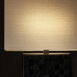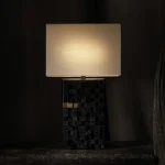 A luminous sculpture born from contrast and precision. The Orion Table Lamp is composed of meticulously crafted cubes of rare ebony, assembled into a bold architectural base. Topped with a silk shade that diffuses light with quiet elegance, Orion evokes celestial balance—raw materiality grounded by refined softness. A statement of timeless craftsmanship and modern poise.