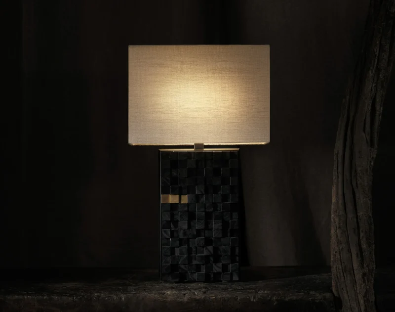 A luminous sculpture born from contrast and precision. The Orion Table Lamp is composed of meticulously crafted cubes of rare ebony, assembled into a bold architectural base. Topped with a silk shade that diffuses light with quiet elegance, Orion evokes celestial balance—raw materiality grounded by refined softness. A statement of timeless craftsmanship and modern poise.