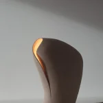 Oris is a ceramic lamp by Andrei Clontea STUDIO shaped with fluid, natural lines that reflect the subtle movement of organic forms. Its surface, textured to reveal a raw, earthy finish, brings warmth and depth to its surroundings. When lit, Oris casts a soft, golden light that recalls the warm glow of evening, filling the space with a gentle ambiance. The interplay of light and shadow across its curves highlights its sculptural presence, making Oris as much an object of art as it is a source of light.