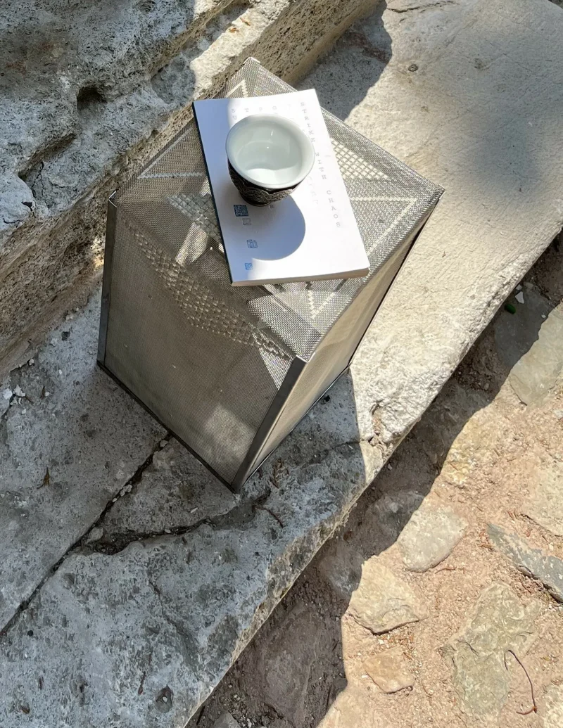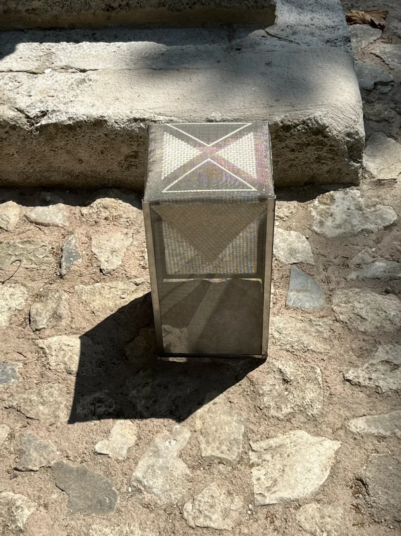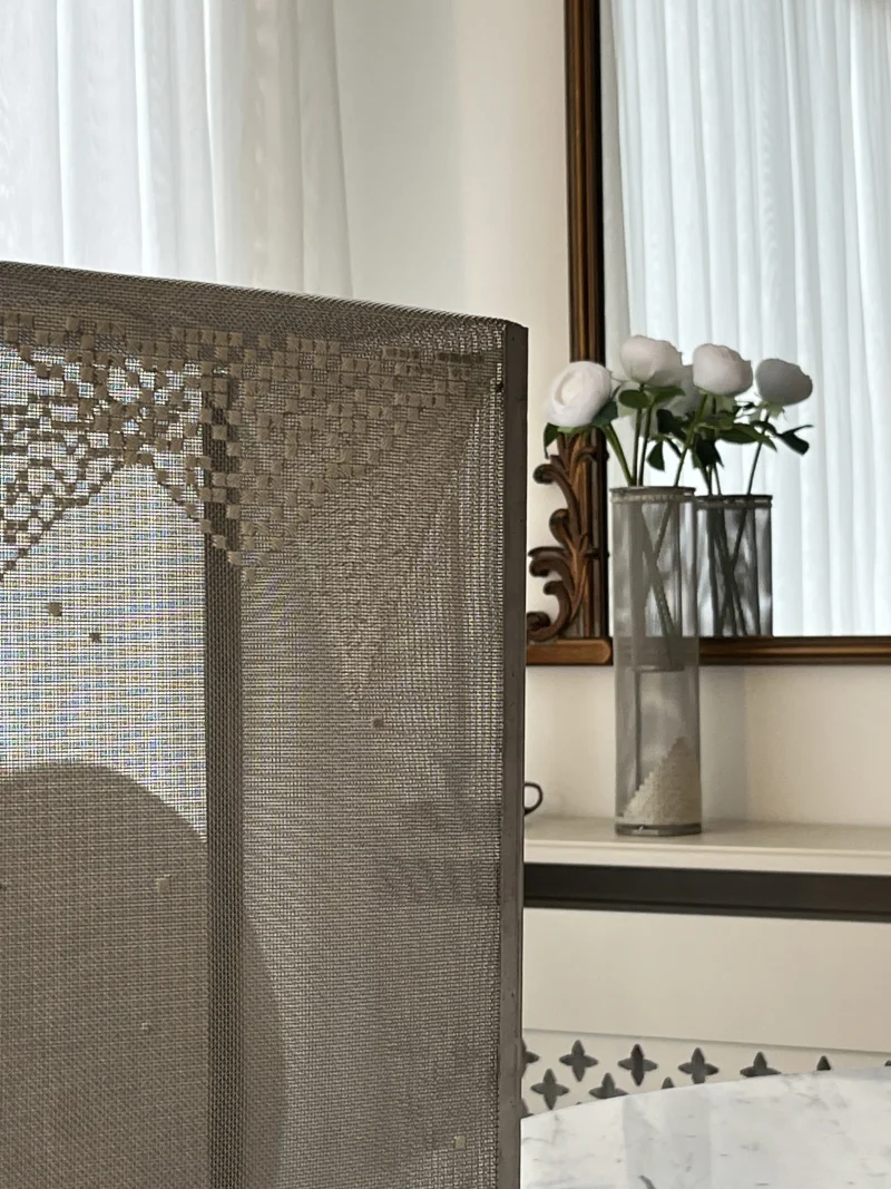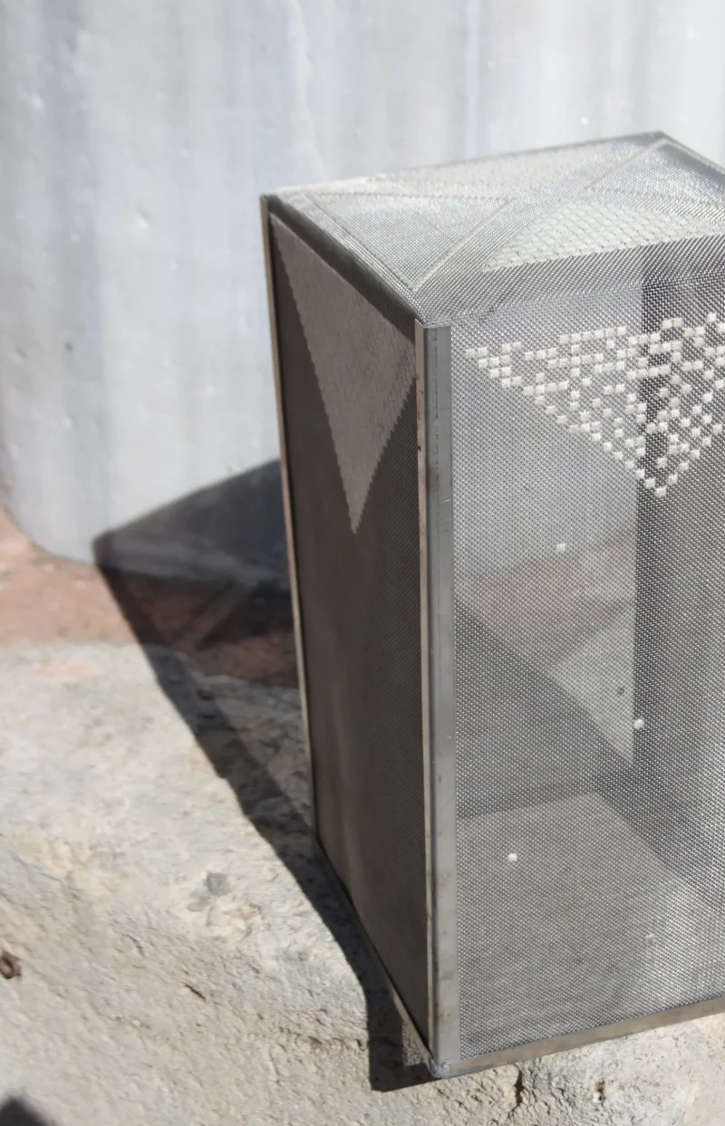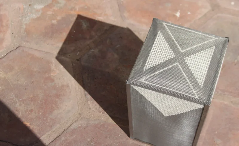 The vase is handmade, it should be handled with care. The wire mesh is hand embroidered with cotton thread.