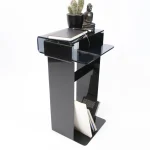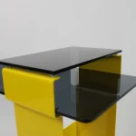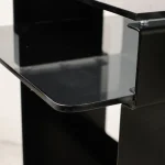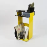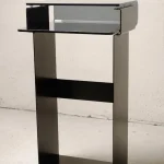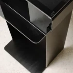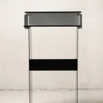 Crafted by German design studio ROI B, the OT Sidetable embodies radical minimalism with its carefully arranged combination of powder-coated rectangular and circular elements. This versatile piece offers a visual metamorphosis, shifting from an airy and delicate silhouette to a more substantial and robust presence, depending on the observer’s viewpoint. Designed for multifunctional use, it features bent Plexiglas storage compartments supported by suction cups, providing flexible storage for reading materials in various orientations. Its flat top surface offers an ideal space for highlighting decorative accessories, harmonizing form and function effortlessly.
