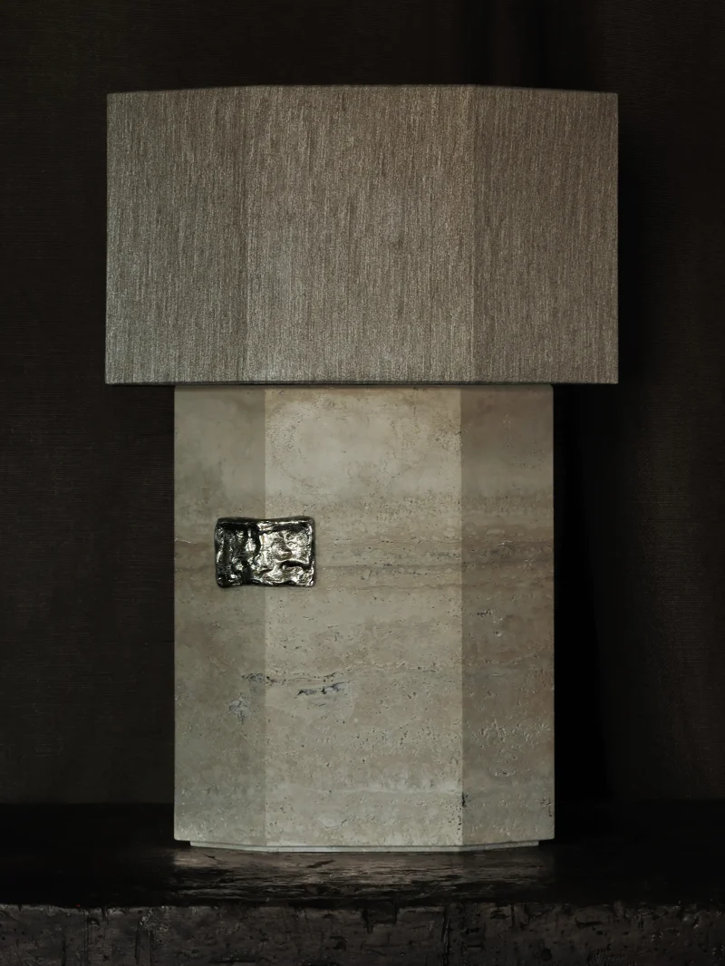 Carved from natural travertine, the Ottavia Table Lamp showcases an octagonal base and coordinating shade, blending architectural clarity with earthy elegance. The stone’s subtle texture and warm tones bring a tactile softness to the bold geometric form, making each piece a timeless statement of refined simplicity.