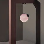 The pendant light Ourania consists of a pink-pigmented glass sphere that carries a petrol-coloured ceramic sphere on one side. A suspension tube made of sturdy iron, coloured in gold-silver, keeps the lamp stable and secure, with the length of the suspension being adjustable. The pendant lamp Ourania was handcrafted, making each piece a unique item. Due to this individual manufacturing, the lamps may vary in material and surface from the model shown in the photos. The weight may vary by 1-2 kg, as it is a handmade product.
