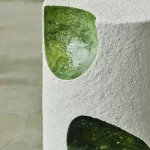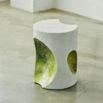 Crafted from paper, epoxy resin, and 3D-printed PLA, this piece serves as a functional stool or side table and a thought-provoking statement. It is waterproof for daily life.