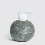 This tissue paper holder doubles as a vase or decor. Crafted from wood and marble/stone with matte exteriors and glossy interiors. Care: Wood- use coconut oil. Marble/stone- clean with soap and water