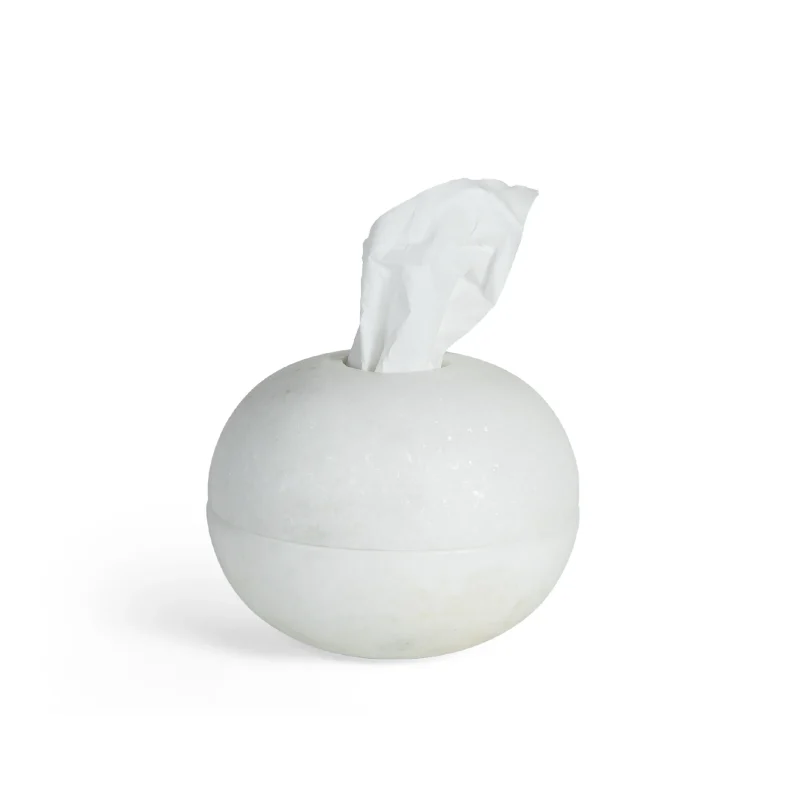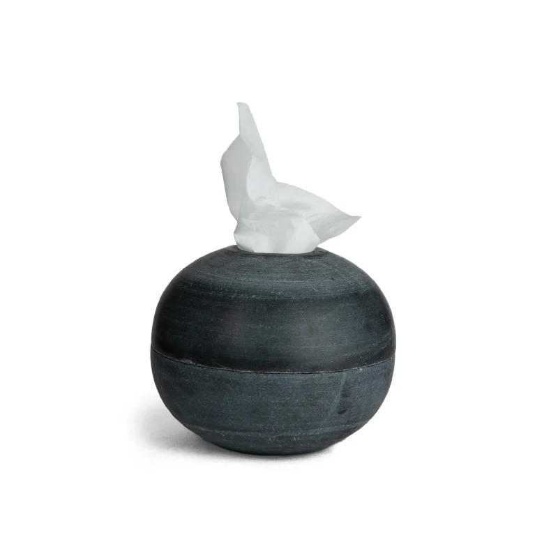 This tissue paper holder doubles as a vase or decor. Crafted from wood and marble/stone with matte exteriors and glossy interiors. Care: Wood- use coconut oil. Marble/stone- clean with soap and water