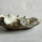 Ceramic piece that can be used as a bowl or a centerpiece on your table, or wall hanging as a sculpture.