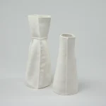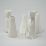 The Kawa Series is crafted using an unusual, painstakingly refined technique unique to Luft Tanaka. Each creation begins as a simple sketch and transforms into a leather mold. After cutting, sewing, and preparing the mold for casting, liquid porcelain is poured inside, slowly forming a thin layer along the leather surface. Once the porcelain sets, the mold is carefully cut at the seams and gently peeled away, allowing the piece to be fired in a kiln.