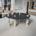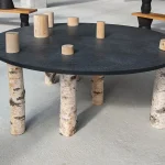 French designer, Guillaume Thireau’s Pala Coffee Table cleverly merges rustic elements with brutalist undertones. Crafted from birch trunks, the table features one end left exposed to accommodate a tray, imbuing it with a sense of purpose. Atop the table, the demarcation between raw and manufactured wood is showcased, serving as a visual representation of nature meeting design. Bring the essence of the outdoors inside with this unique and visually captivating piece.