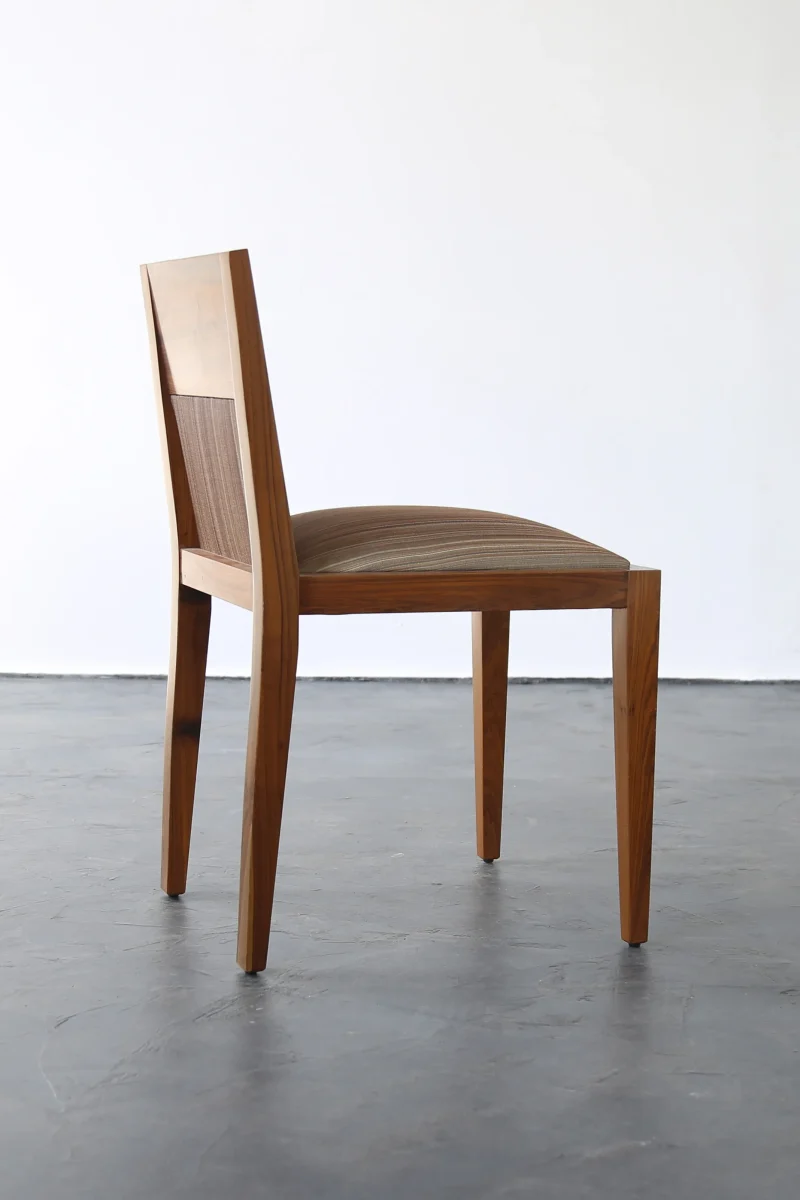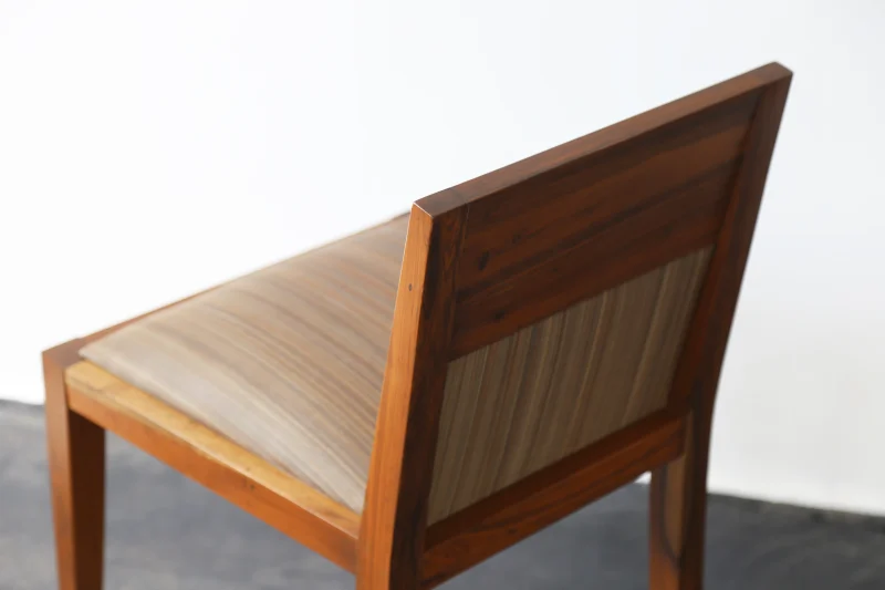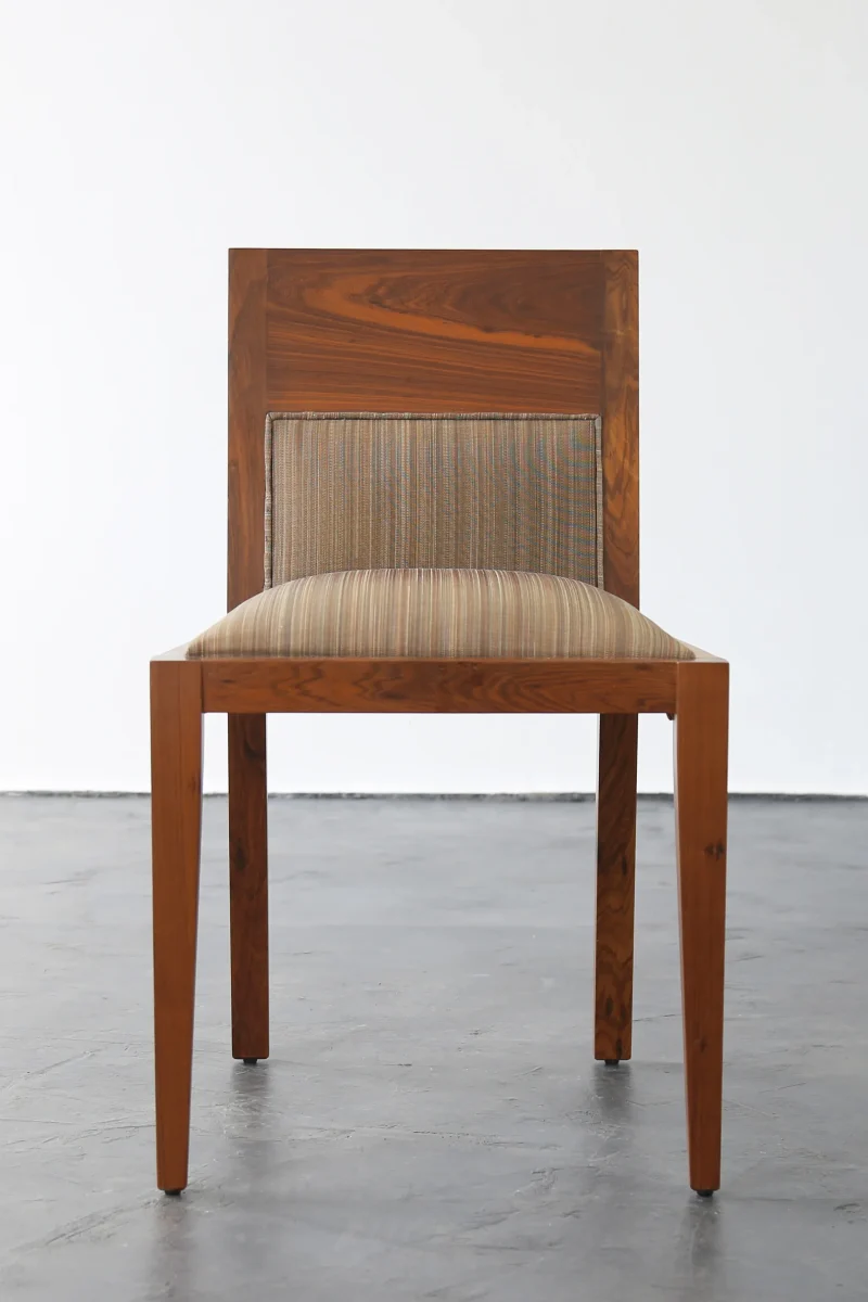 The Palermo Hollywood Chair was named after the Buenos Aires neighborhood known for its cinematic history, this piece features an angular solid wood frame partially wrapped in the material of your choice. Shown in Argentine Rosewood.