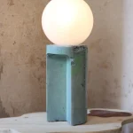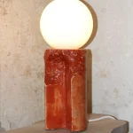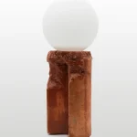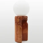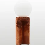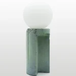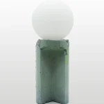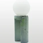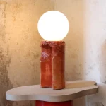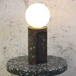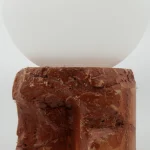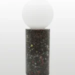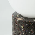 Made of a terrazzo formulated with recycled materials from the studio, this lamp was purposefully broken and re-assembled. It was then coated with natural pigments and sealed.