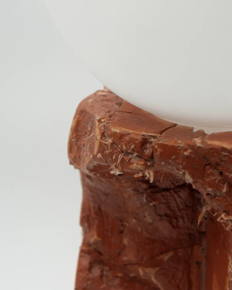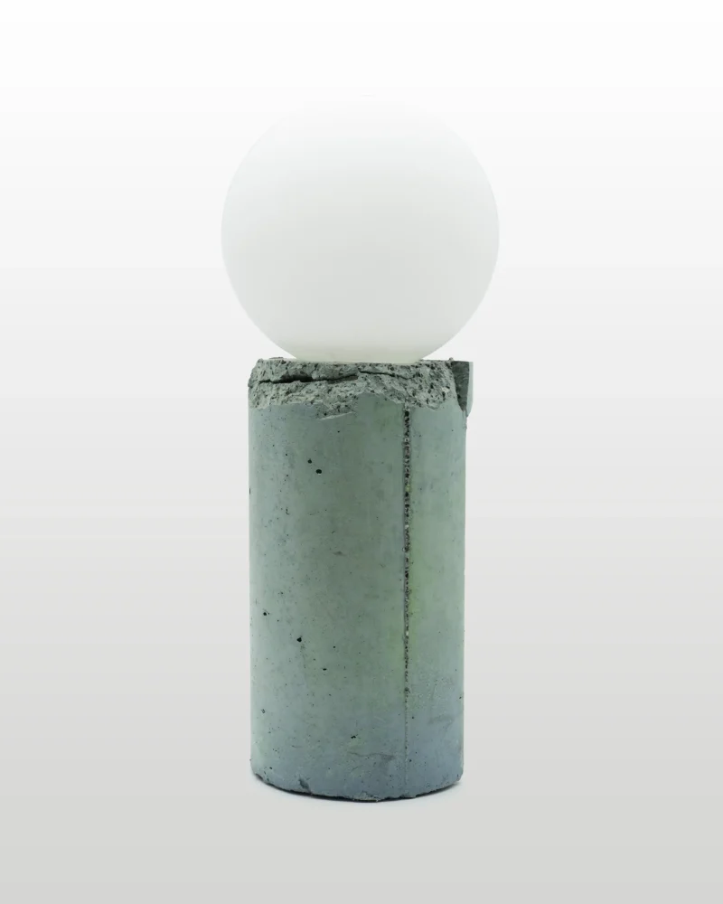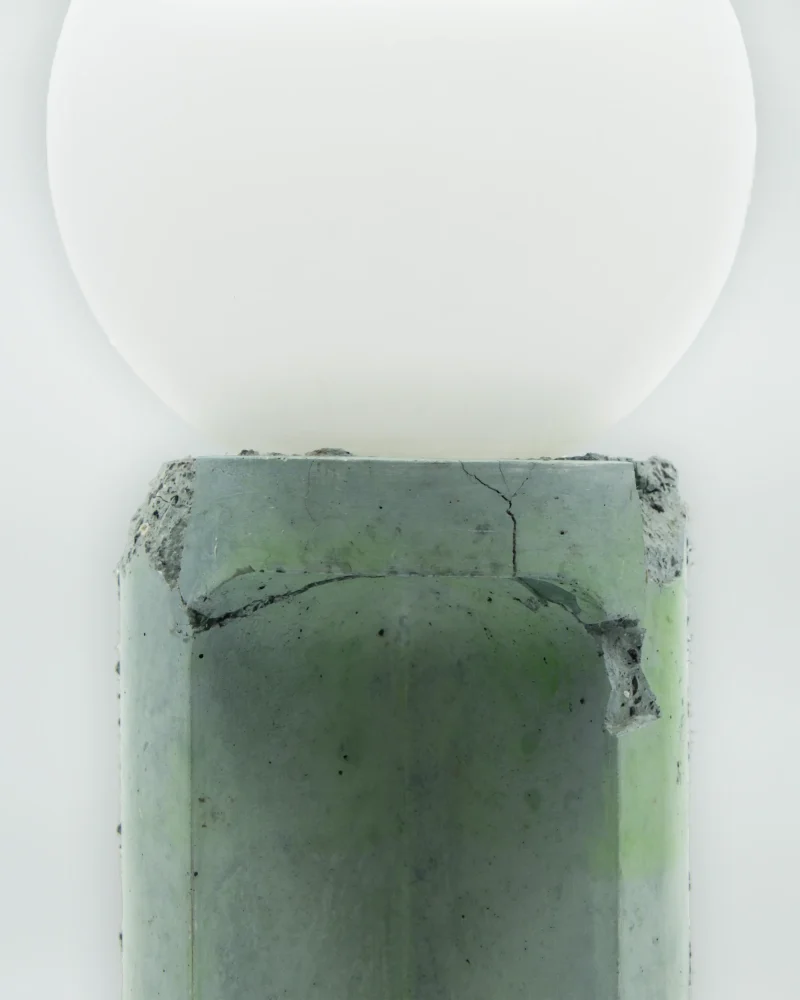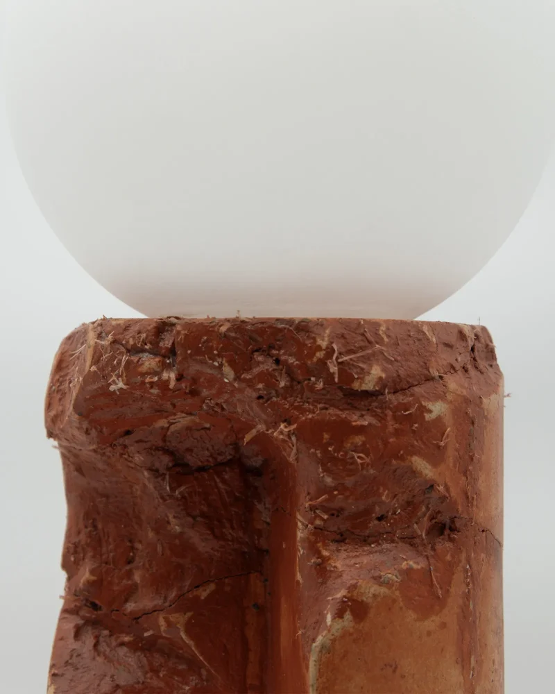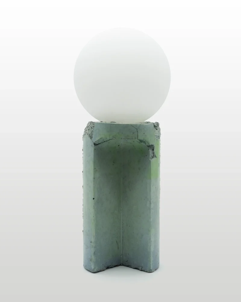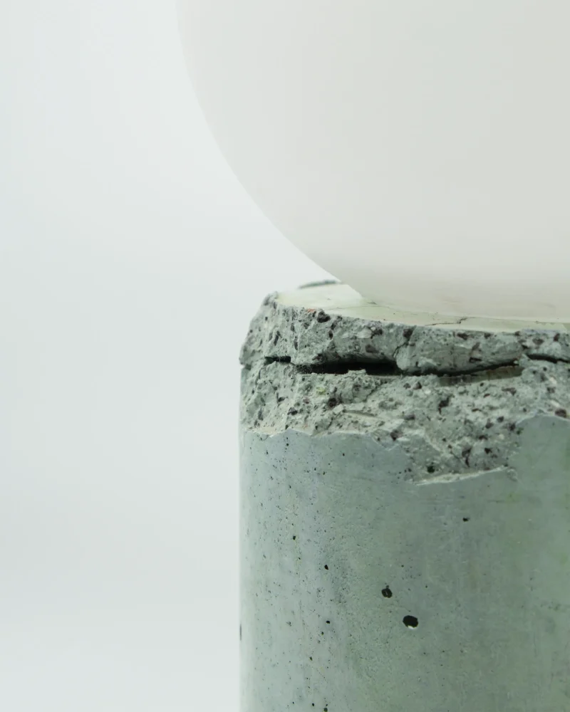 Made of a terrazzo formulated with recycled materials from the studio, this lamp was purposefully broken and re-assembled. It was then coated with natural pigments and sealed.