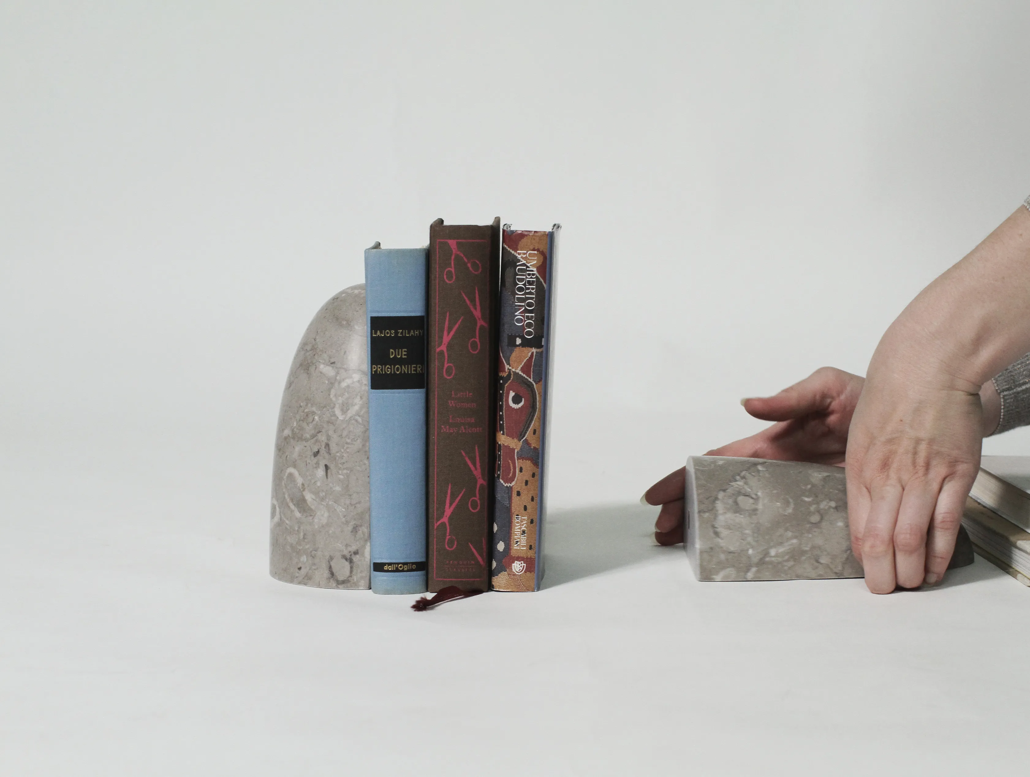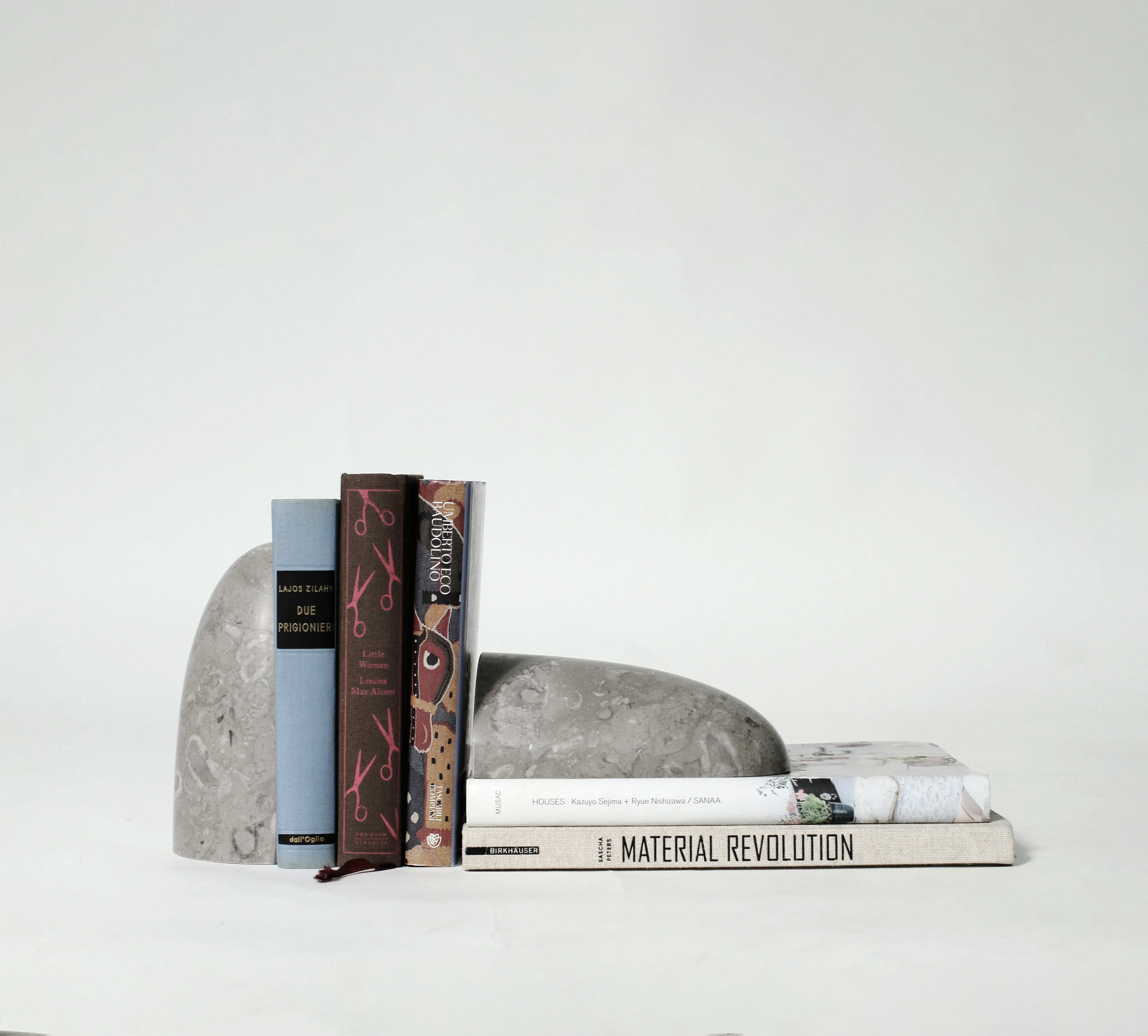 Made from Lipica Fiorito stone, a limestone from the Karst region between Italy and Slovenia. Fiorito (“floral”) refers to its pattern, formed over millions of years, containing fragments of shells, microorganisms, and corals. Its curve highlights these fossils, making each piece unique and creating a meeting of geometry, geology, and craft.