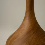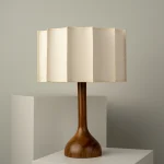 Turned parota wood base and fabric-lined lampshade with fiberglass and polystyrene.
