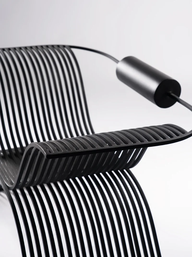 The frame, crafted from gracefully curved steel, mirrors the fluidity and rhythm of the Patewo hairstyle, evoking a sense of movement and vitality. Its composition suggests a delicate balance, as if the elements are dancing in harmony, embodying the rhythm and energy of life itself.
