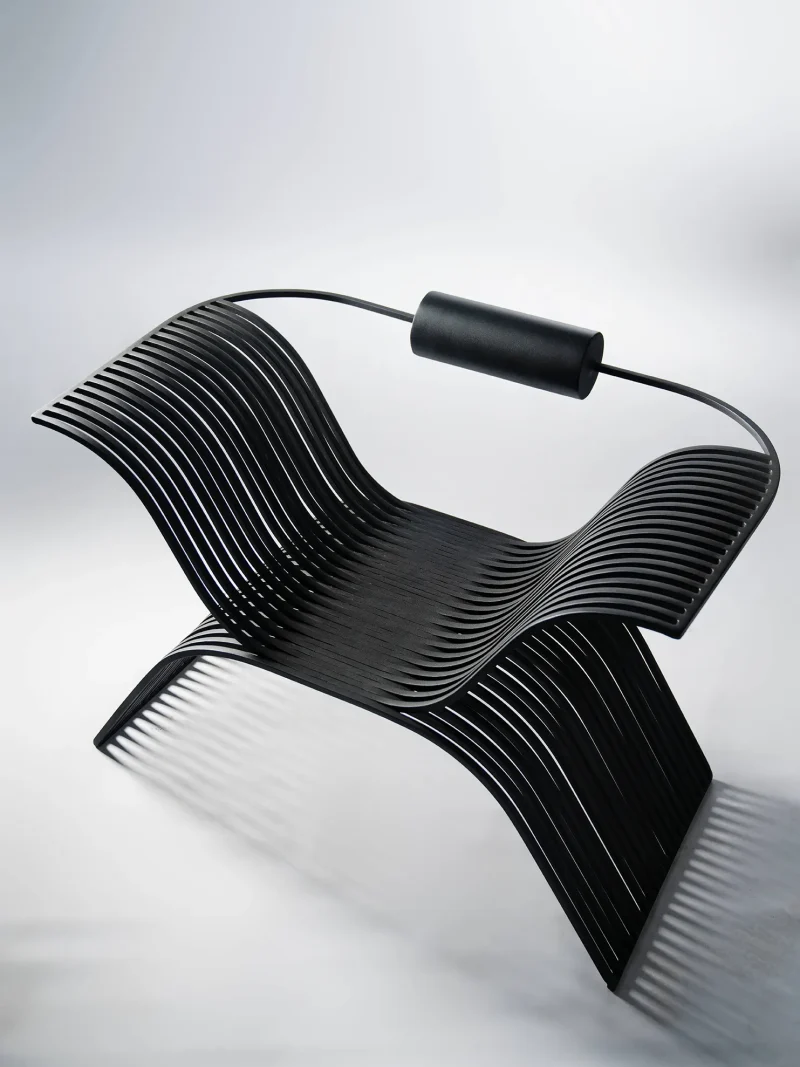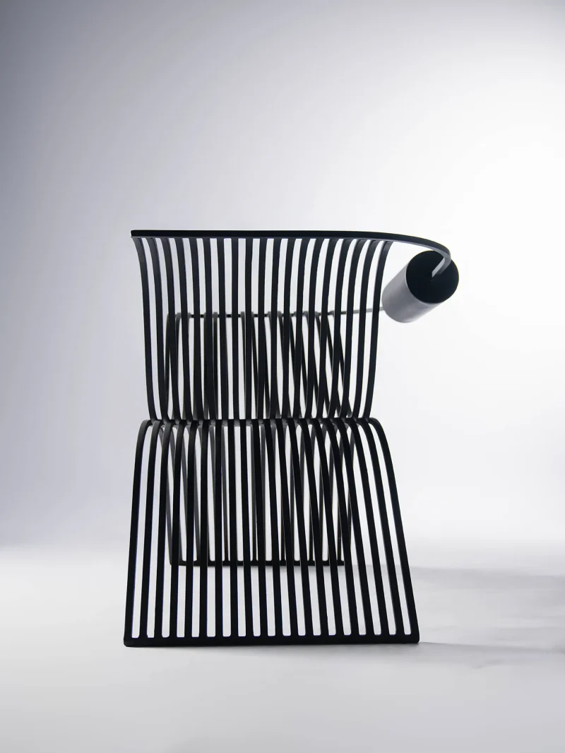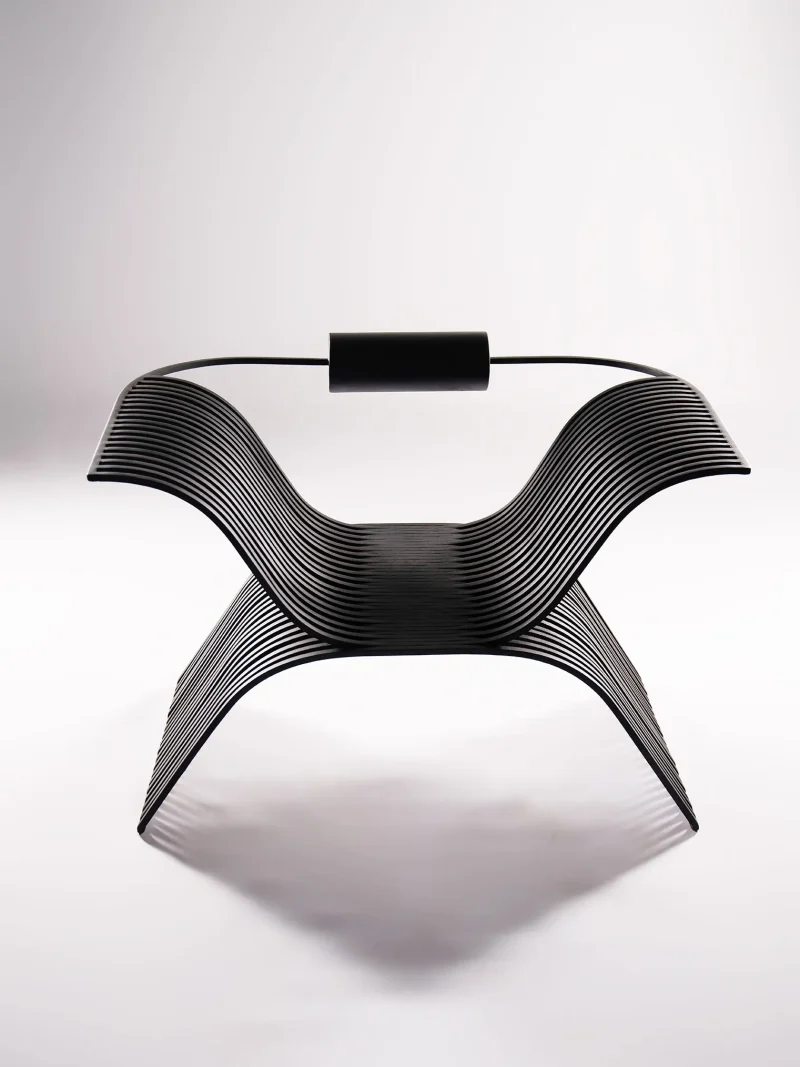 This chair is a stunning blend of contemporary design and traditional African craftsmanship, drawing inspiration from the intricate elegance of the Patewo hairstyle. With its bold lines, dynamic forms, and rich textures, it transcends functionality to become a captivating work of art.