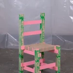 PATINA chair is made from malemine-faced-chipboard, linnen straps and paint.