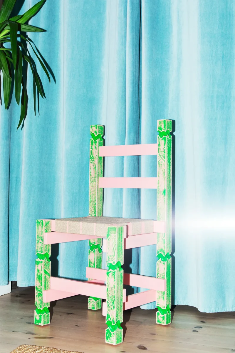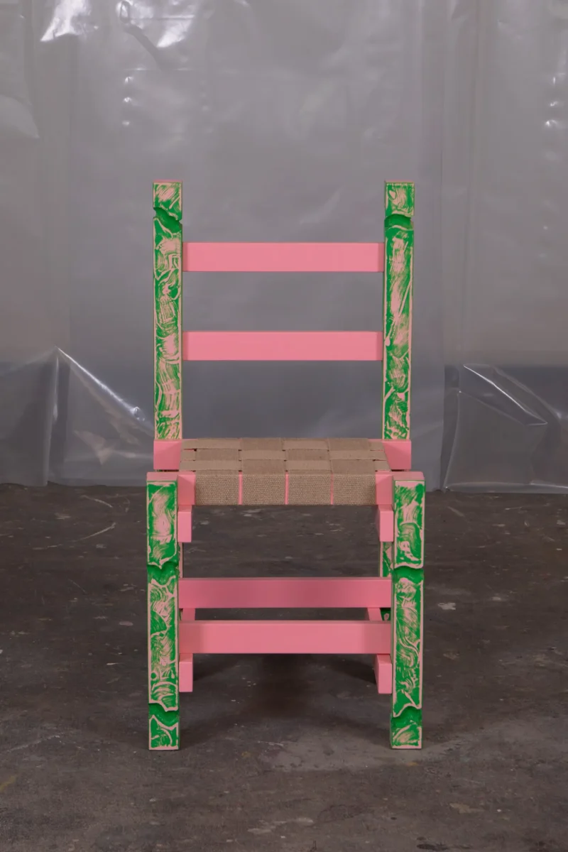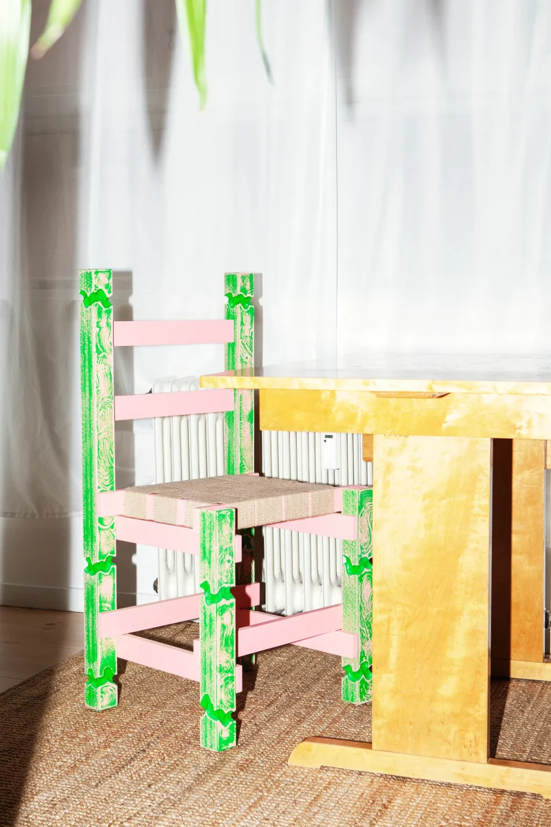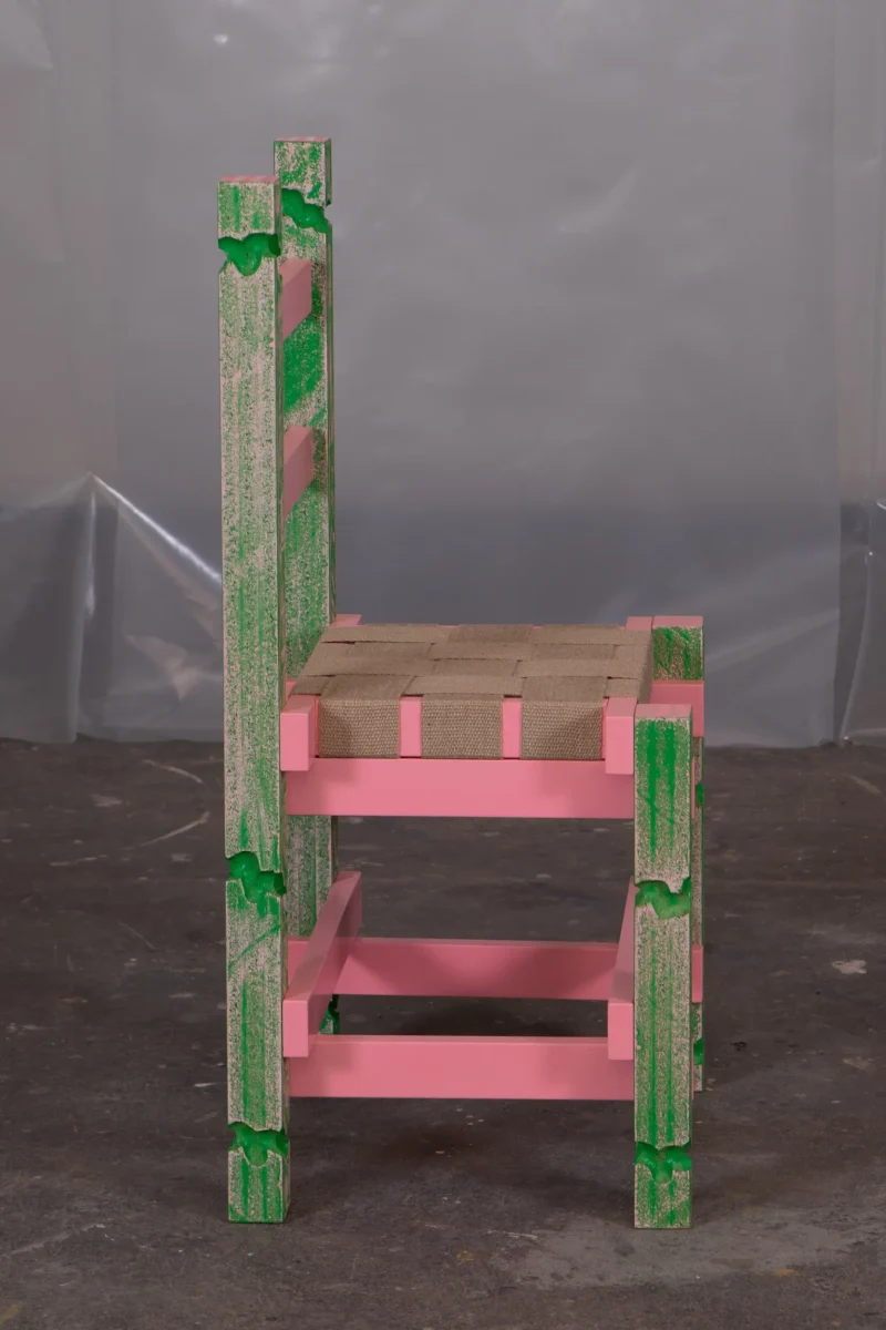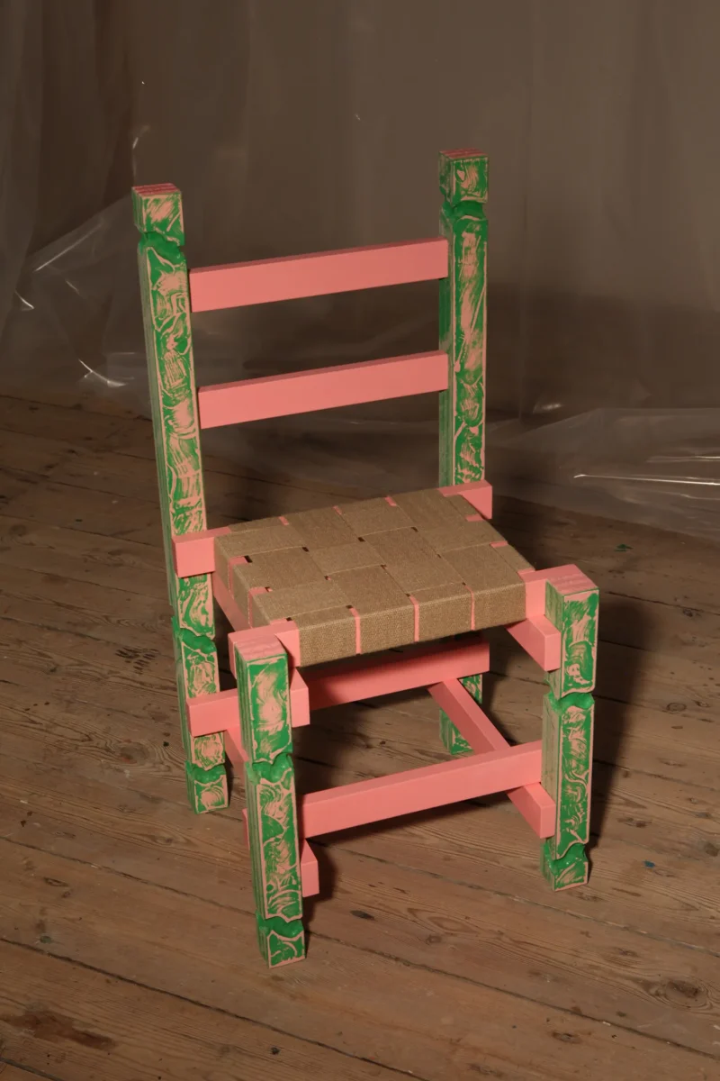 PATINA chair is made from malemine-faced-chipboard, linnen straps and paint.