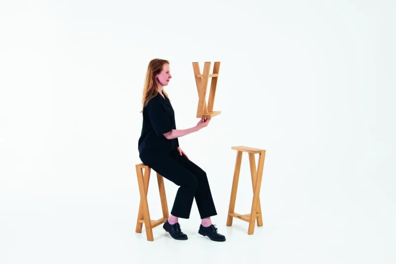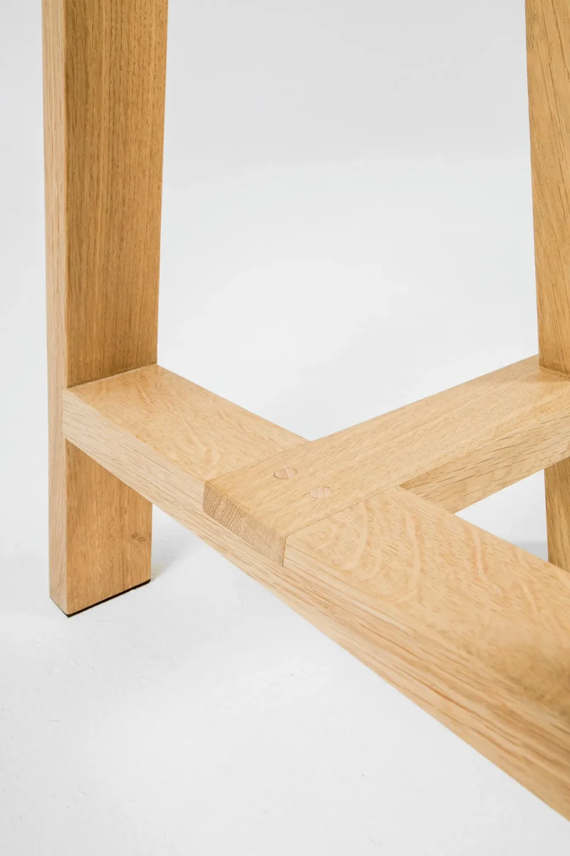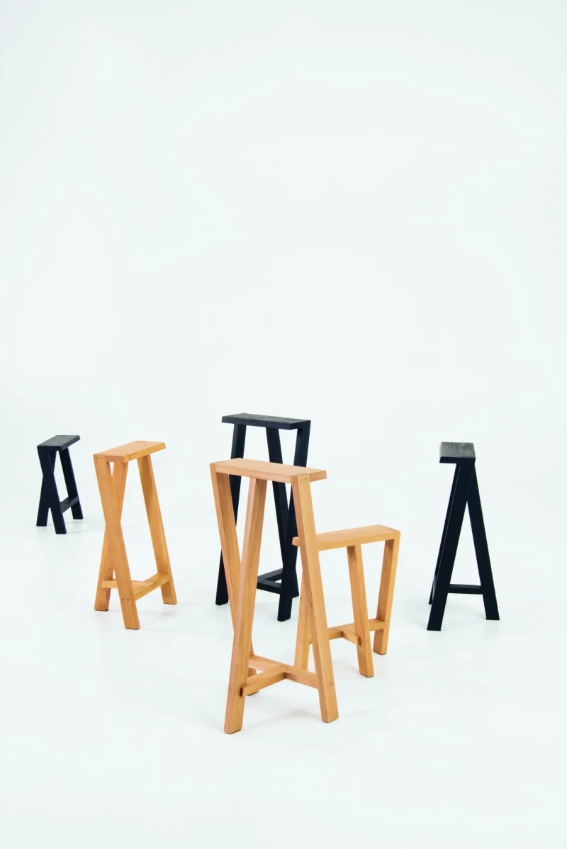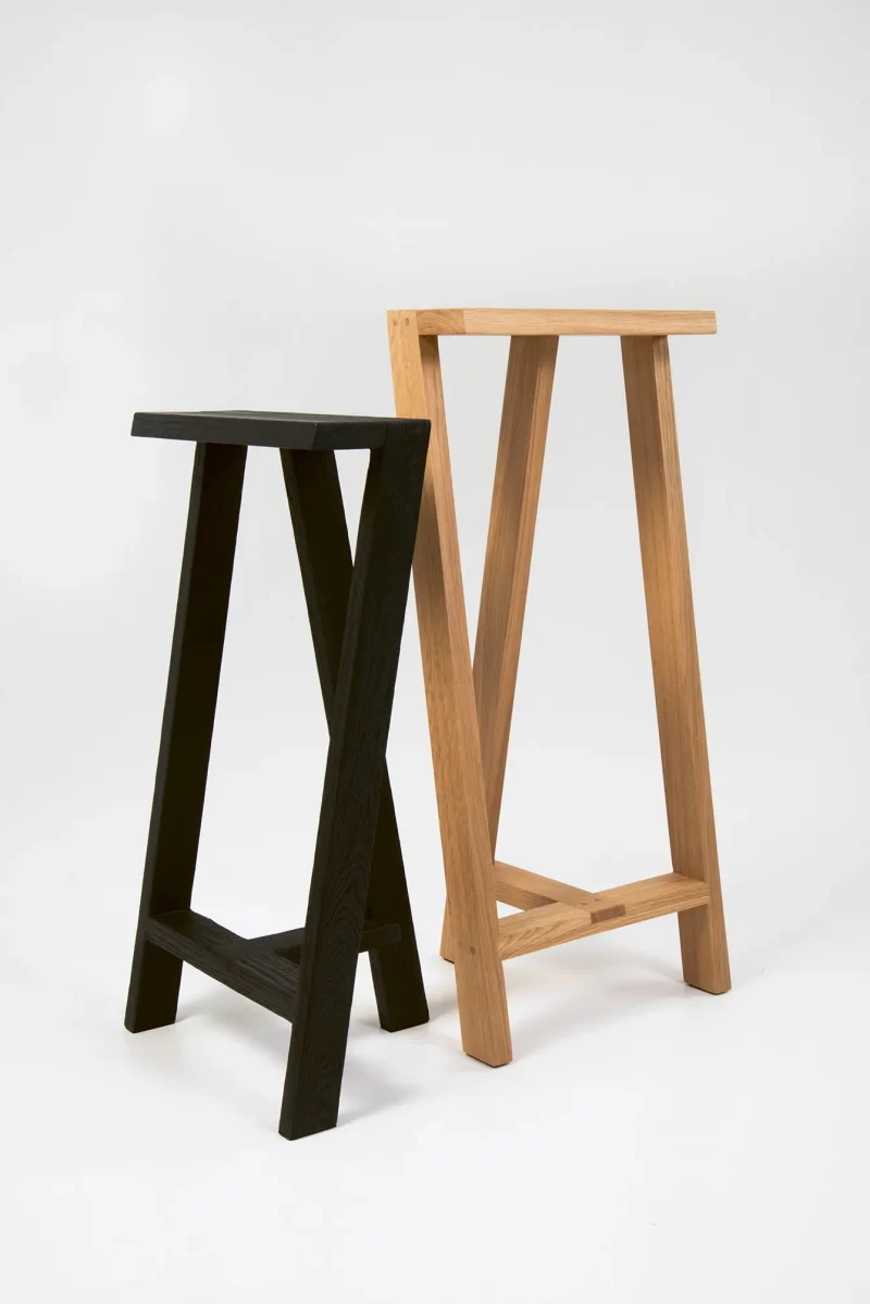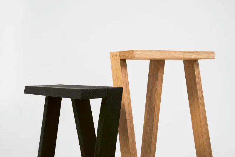“Pausa” is a simple stool meticulously assembled from solid oak slabs. The narrow dimensions of the seat make for a perfect to take a break (pause) on the three-legged structure.
