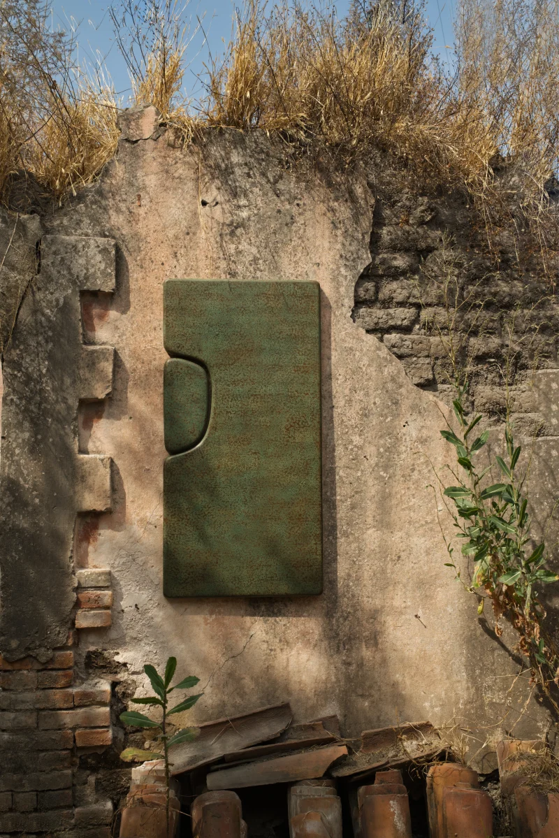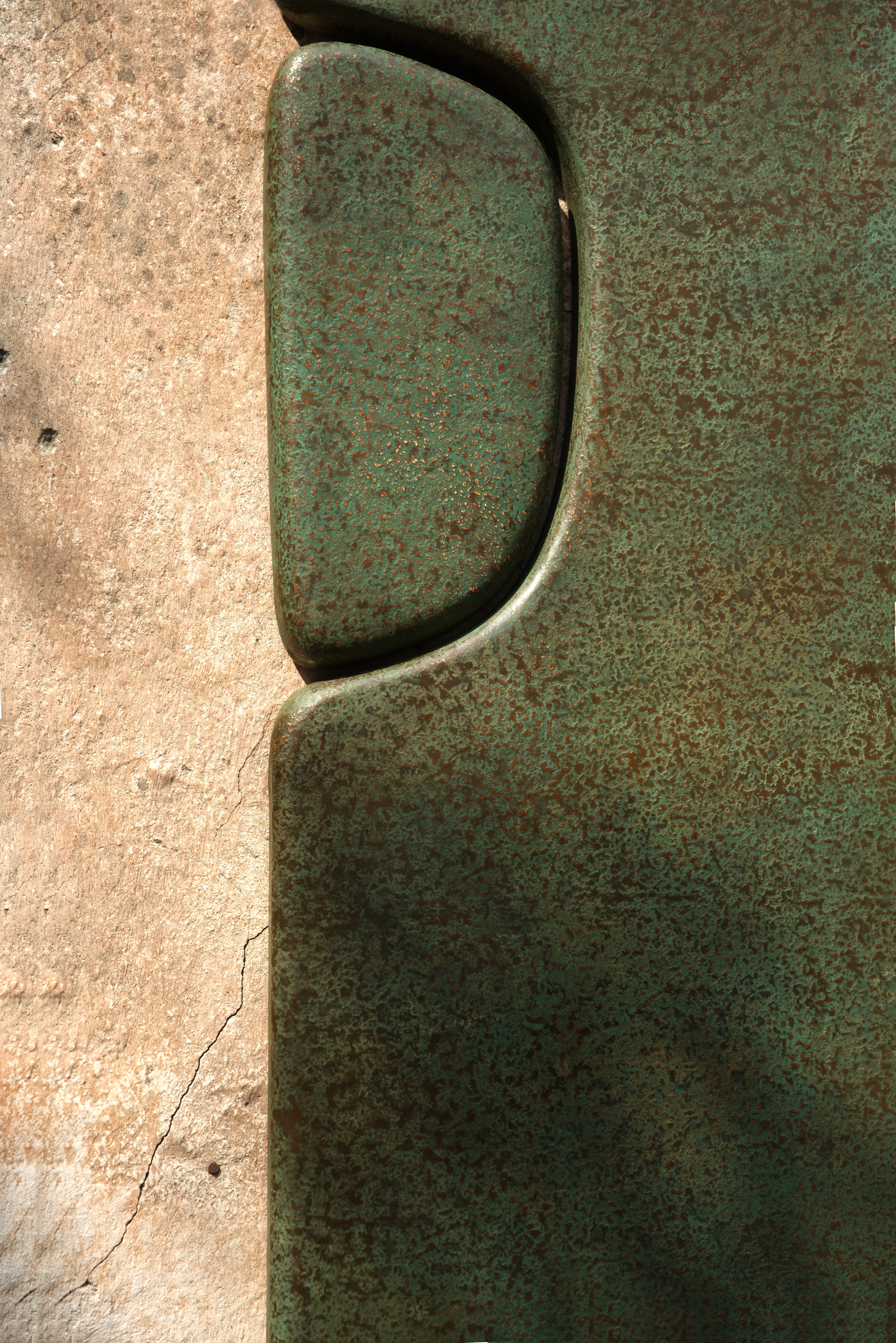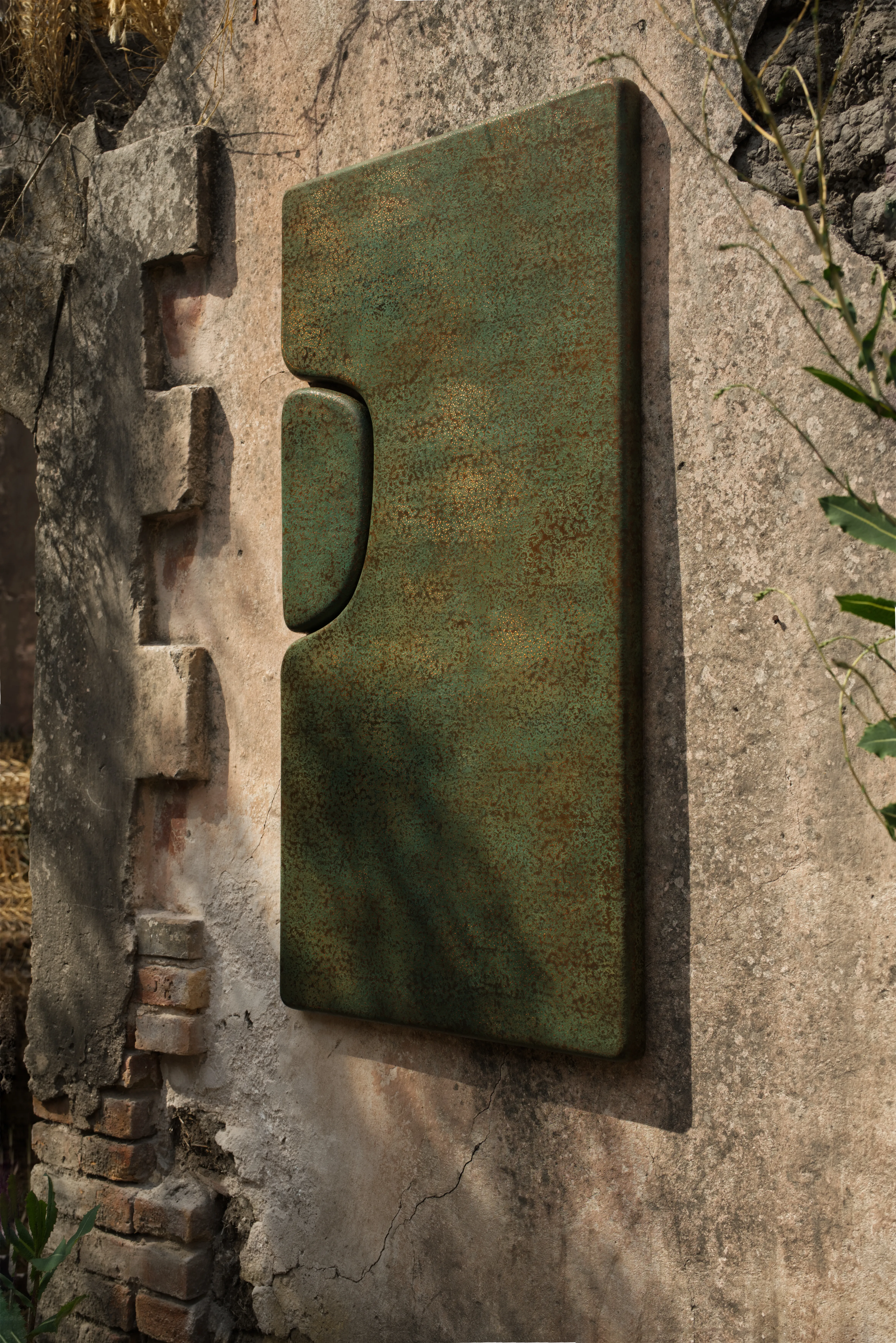 Wall sculpture composed of two independent elements, crafted from hammered copper sheet, gauge #22.