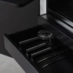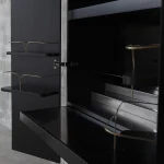 Perfection, existing in the “imperfections” of artisanal methods, is the tool that bestows soul to each piece, moving away from mass production. Steel rod structures are the common language of the collection, achieving a visual sophistication that pushes toward innovation. Sand-casted bronze details contrast against automated manufacturing components, such as CNC-carved wooden parts or laser-cut metal parts.