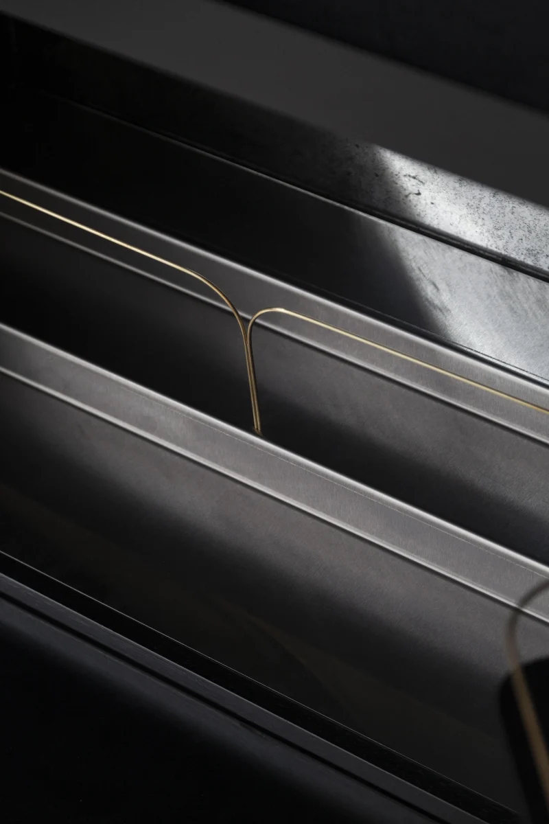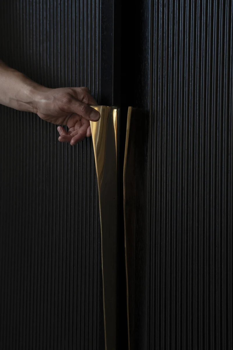Perfection, existing in the “imperfections” of artisanal methods, is the tool that bestows soul to each piece, moving away from mass production. Steel rod structures are the common language of the collection, achieving a visual sophistication that pushes toward innovation. Sand-casted bronze details contrast against automated manufacturing components, such as CNC-carved wooden parts or laser-cut metal parts.