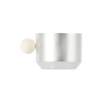 Elevate your daily tea or coffee routine with the exquisite Perla Cup, from Italy-based designer, Natalia Criado. The plated brass cup, handcrafted in Italy, radiates a minimalist charm and Art Deco elegance. The handle, adorned with a white stone, introduces a touch of jewelry-inspired sophistication to your tableware. Immerse yourself in the perfect blend of aesthetics and functionality as you experience the luxurious beauty of our Perla Cup.