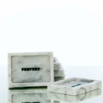 Pervert is a (soap) dish that provocatively asks: What are we willing to welcome into our homes? Made from carrara marble and engraved with the word “Pervert”, the piece explores themes of normativity, deviance, and social boundaries framed through the lens of domestic design. The word “Pervert” carries loaded connotations. By embedding it in a functional object, the work challenges our ideas of hospitality and comfort: Can we embrace the outsider? Do we sanitize our spaces to avoid discomfort or is there room for difference, contradiction, and subversion?