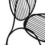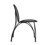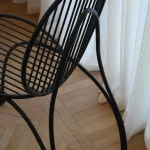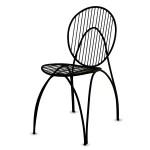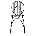 The chair features thin metal rods moulded to merge into a solid, supportive base.