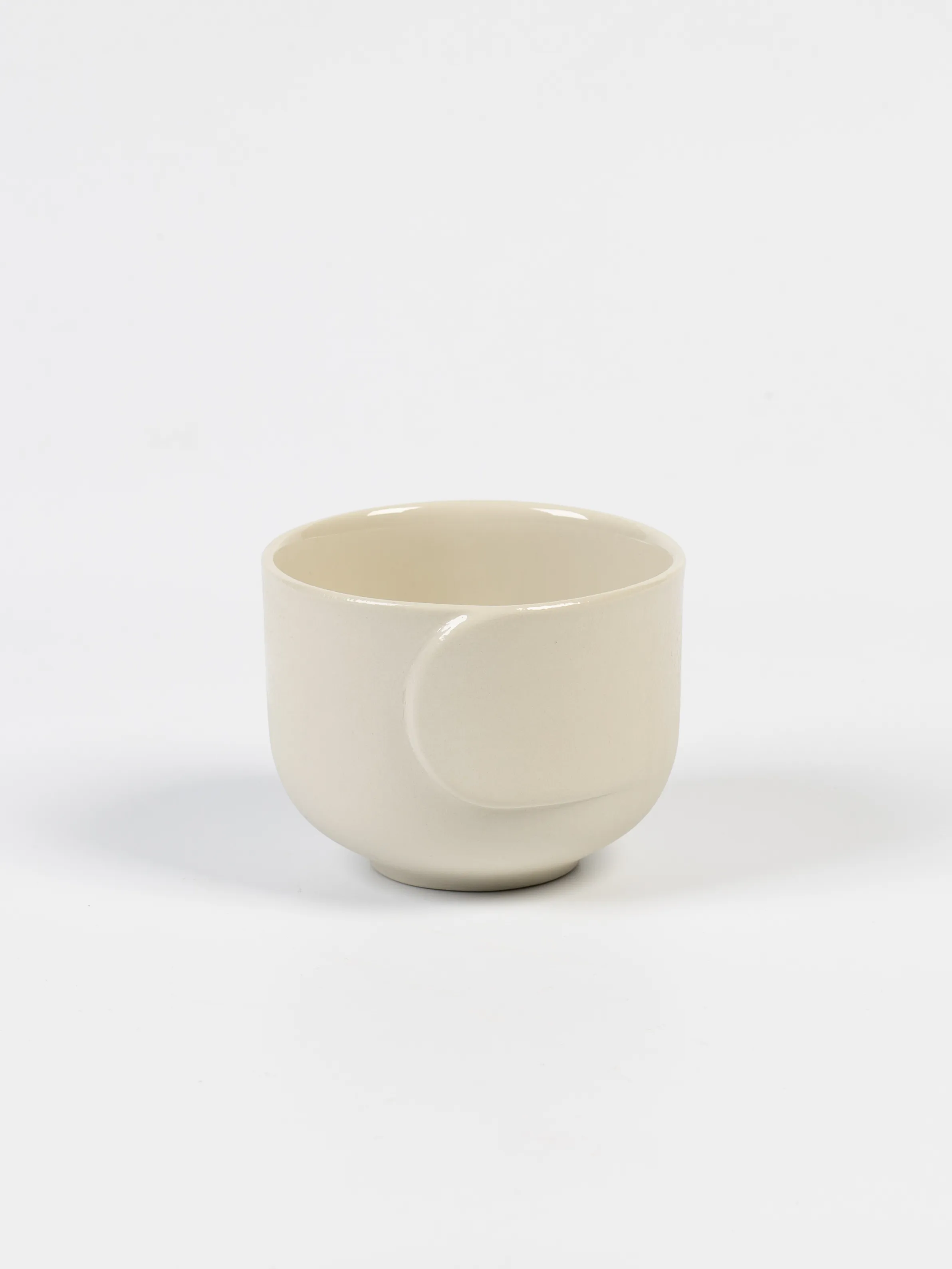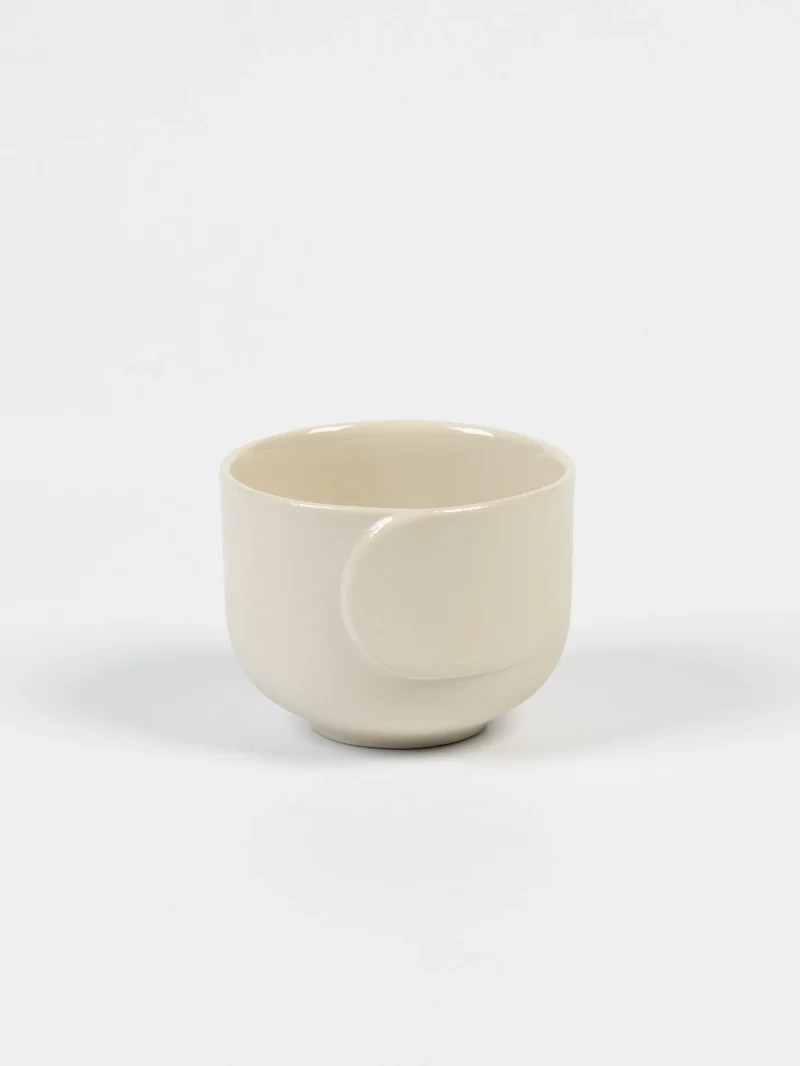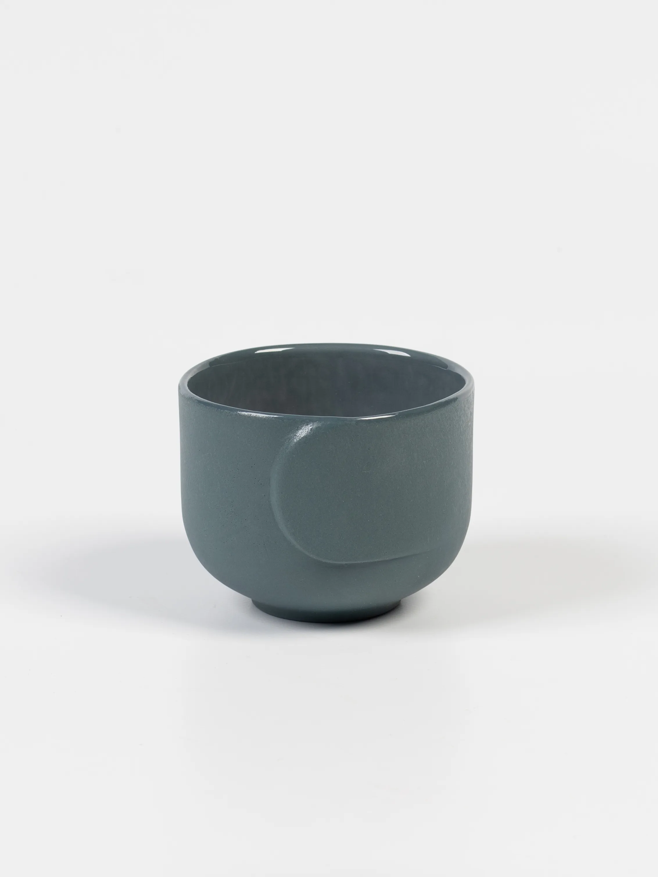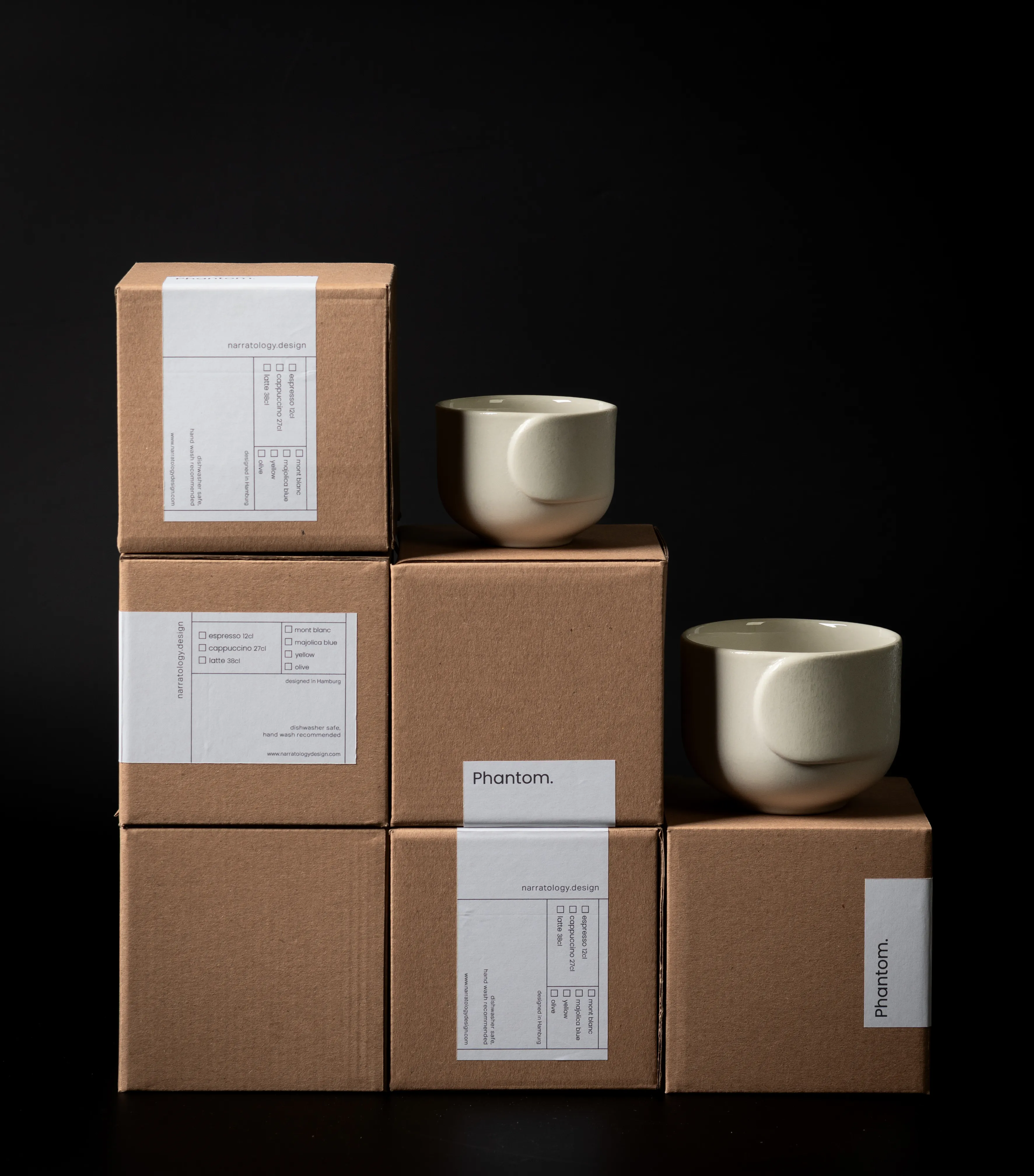 Phantom does not possess a handle in the conventional sense. Yet, when held, it creates the distinct sensation of one. The subtle sculptural gesture on its surface emerges from the body of the vessel and dissolves back into it, quietly suggesting a place for the hand to rest. It offers both a visual rhythm and a tactile cue, guiding the user through touch as much as through sight.