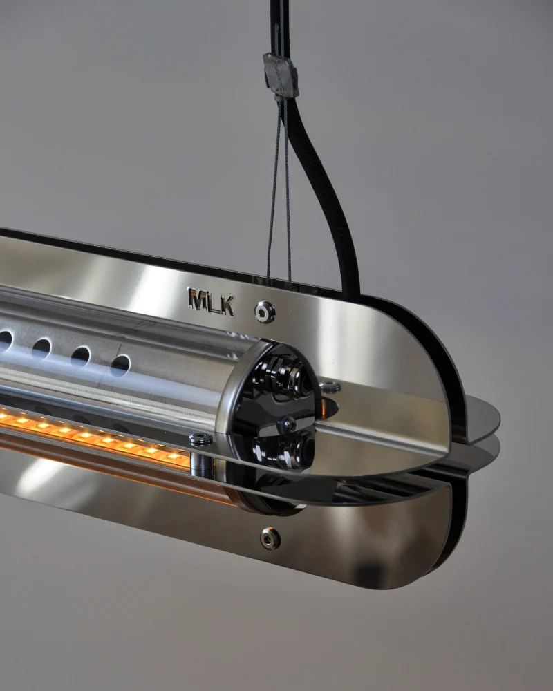 The design of this lamp gave rise to other creations as well as the 'sandwich design concept'. The insertion of assembly elements between two sheets of metal, allowing a dismountable design, became MLK Furniture's signature.