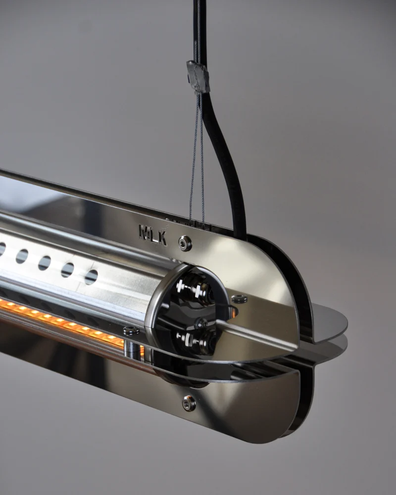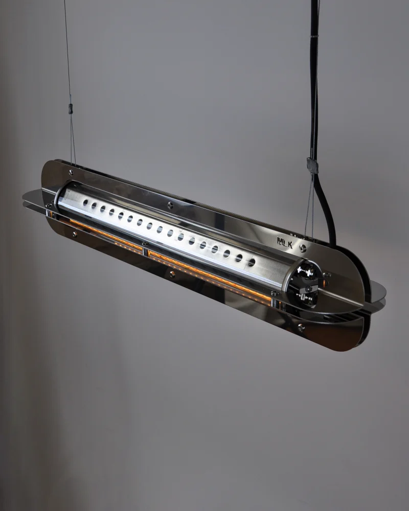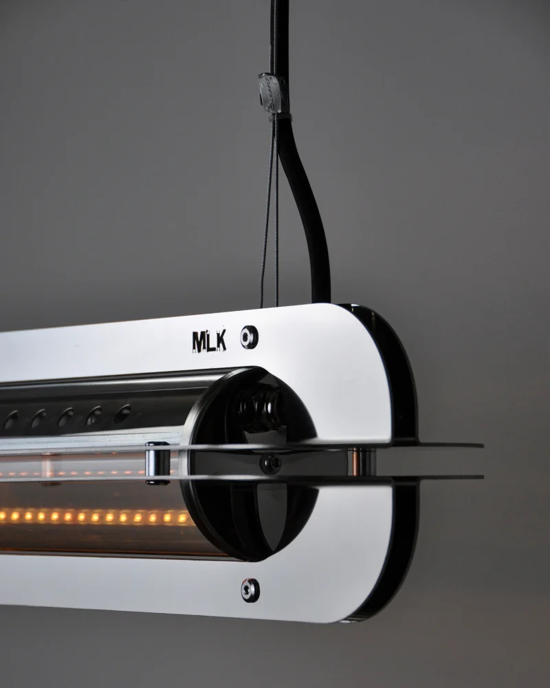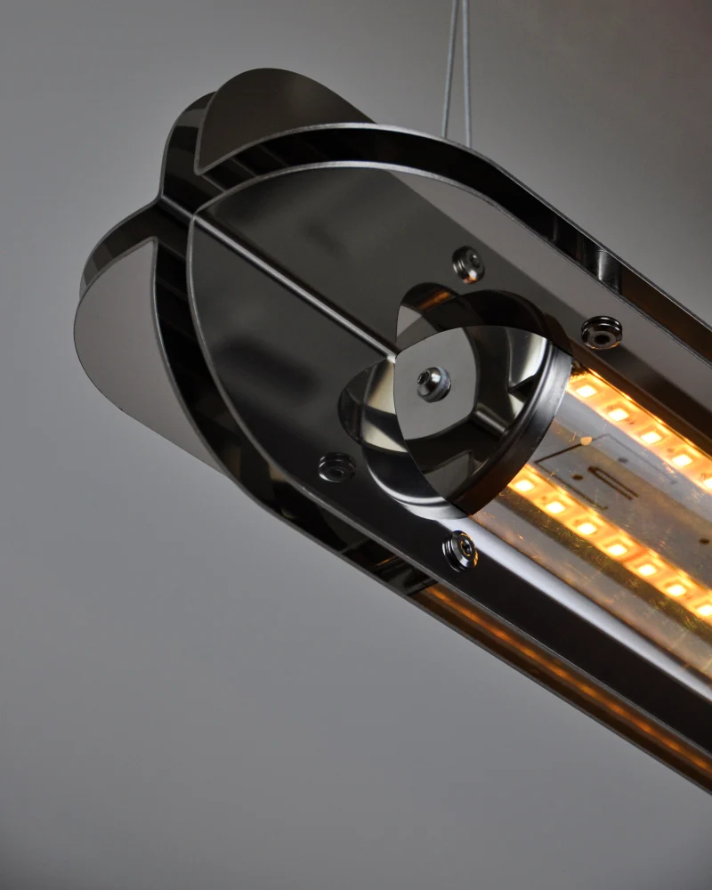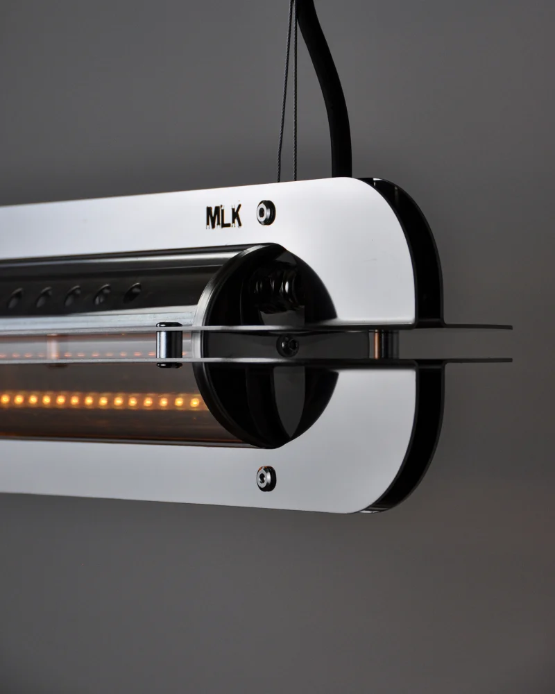 Arthur is inspired by the vibrant nightlife and widespread use of neon lights in the city of Bangkok. After spending seven years immersed in this “neon paradise”, he created his first prototype, the Ne600 Lamp, elevating a common industrial lighting system into a unique decorative object. The lamp features a lighting system encased between metal sheets and acrylic diffusers, resulting in a hybrid design that is both functional and elegant, blending industrial and artisanal elements.