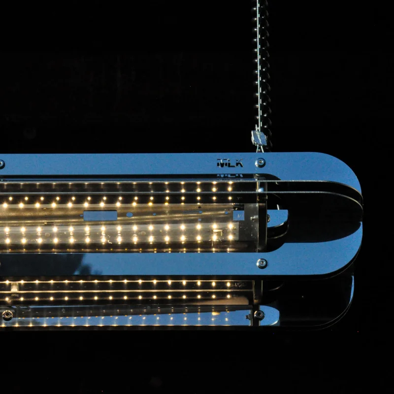 The design of this lamp gave rise to other creations as well as the 'sandwich design concept'. The insertion of assembly elements between two sheets of metal, allowing a dismountable design, became MLK Furniture's signature.