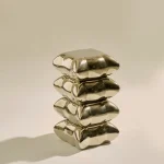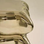 Inspired by the gentle embrace of a pillow, this unique piece features a series of individually cast aluminum cushions, meticulously stacked and finished in a luxurious nickel plating. The highly reflective surface and sculptural form create a dynamic interplay of light and shadow, making it a focal point in any room. A chic side table for your drinks, or a standalone artistic element, it offers both unparalleled style and utility. Its sturdy construction ensures durability while its distinctive aesthetic commands attention.