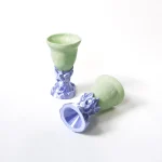 For this series, Triantafylli scanned various shapes she made out of clay. These hand-shaped forms are 3D printed and then combined with the porcelain part in order to create these pedestal cups.