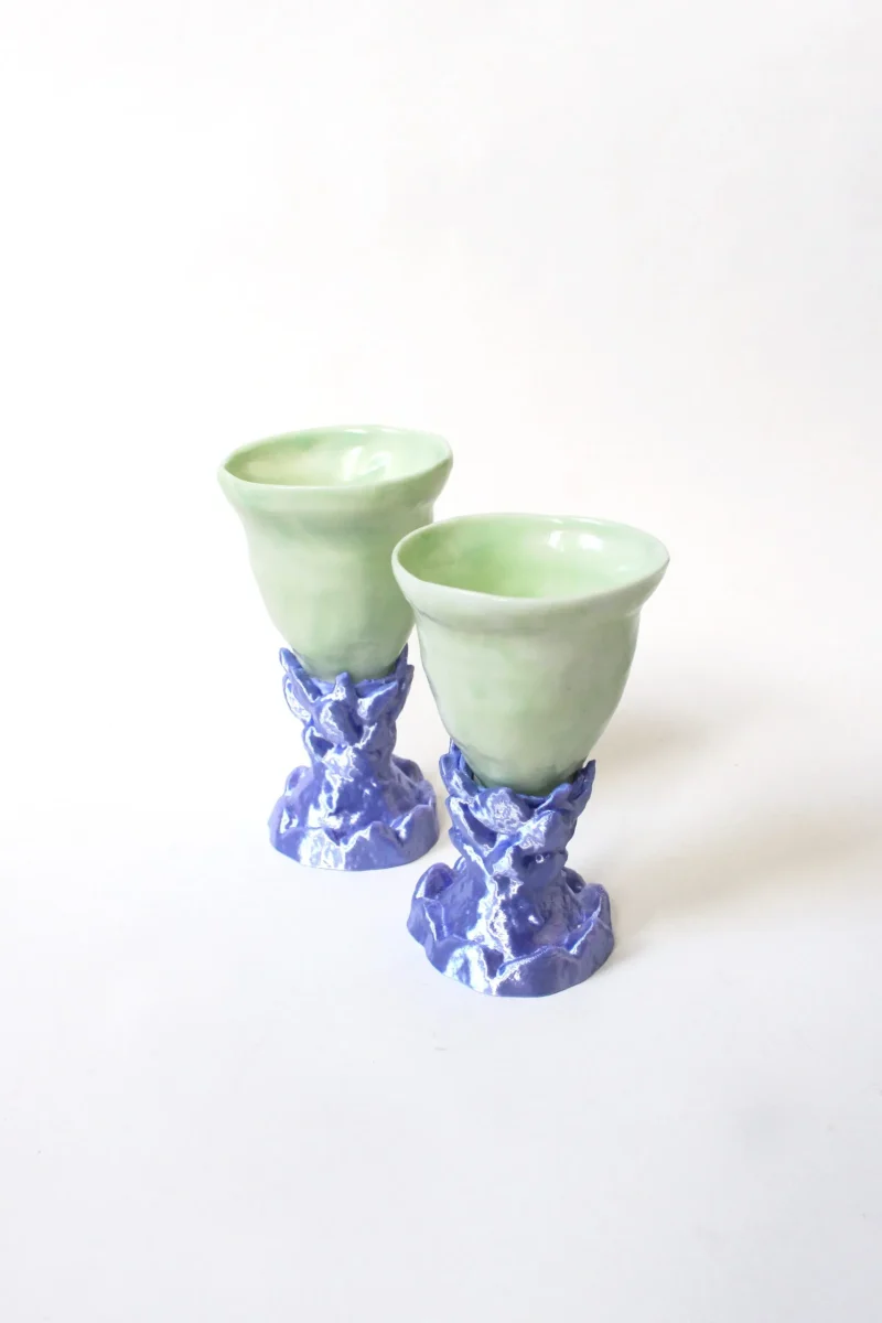 For this series, Triantafylli scanned various shapes she made out of clay. These hand-shaped forms are 3D printed and then combined with the porcelain part in order to create these pedestal cups.