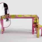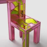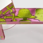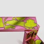 Through symbolic elements that the artist creates through the art of mirror engraving, it is possible to transform the flow of thoughts that accompanies everyday life into reflective material, freezing them and making them tangible in this work with a pop vein, a poetic code of the designer.